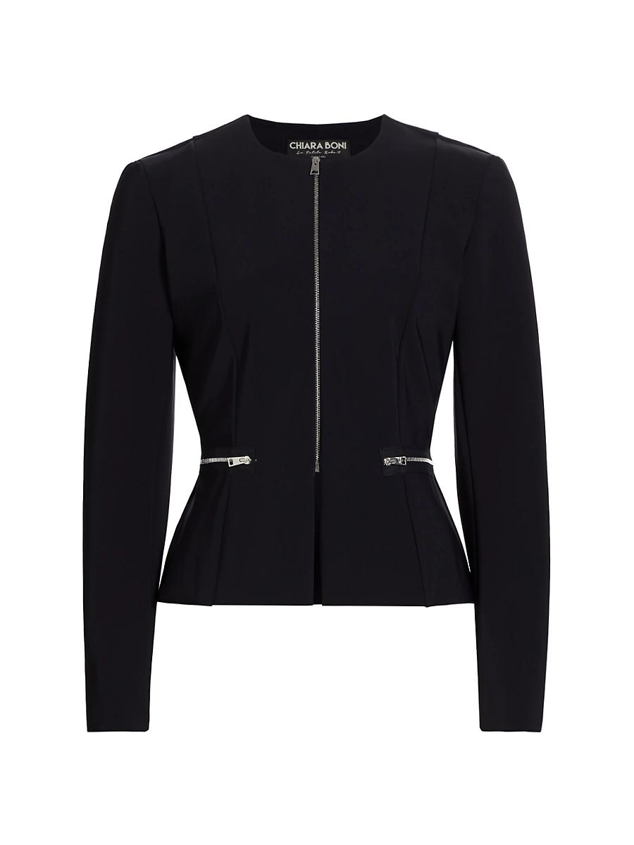 The Felce jacket from Chiara Boni La Petite Robe highlights a peplum silhouette, detailed with side zip pockets and a front zip closure. Jewelneck Long sleeves Side zip pockets Front zip closure 72% polyamide/ 28% elastane Dry clean Made in Italy SIZE & FIT Model measurements: 510 tall Model is wearing a US size 4 ABOUT THE BRAND Self-taught designer Chiara Boni began her career creating ready-to-wear for several Italian labels before launching Chiara Boni La Petite Robe in 2007. With a focus on flattering the female form, her elegant and versatile styles have gained a loyal following. Modern Collections - Branded Separates > Chiara Boni La Petite Robe > Saks Fifth Avenue > Barneys. Chiara Boni La Petite Robe. Color: Black. Size: 2.