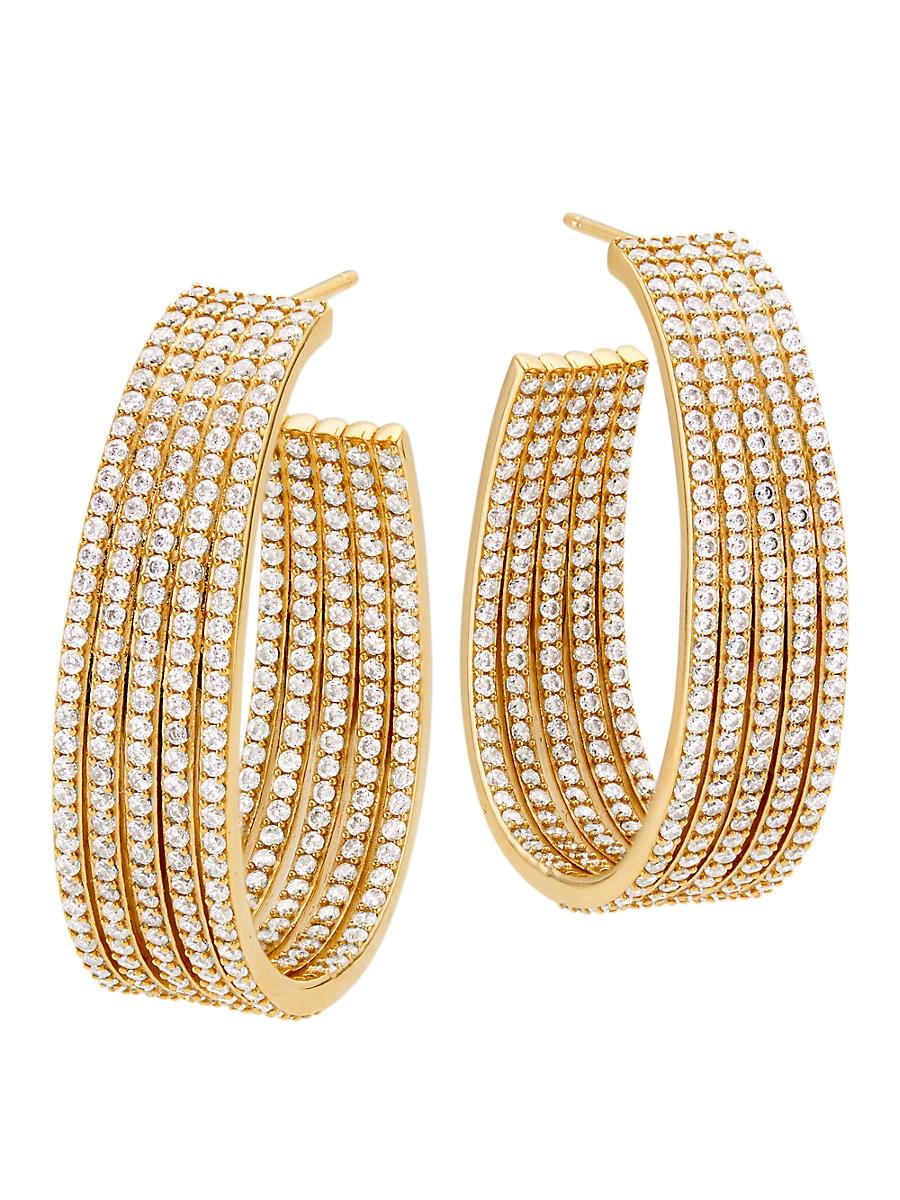 From the Feliz Collection. Adriana Orsinis C-hoop earrings are crafted of 18K gold-plated sterling silver. This chunky style showcases rows of pav cubic zirconia stones for added sparkle and shine. Cubic zirconia 18K gold-plated sterling silver Post back Imported SIZE About 1.4L x 0.4W. Fashion Jewelry - Adriana Orsini > Adriana Orsini > Saks Fifth Avenue > Barneys. Adriana Orsini. Color: Gold.