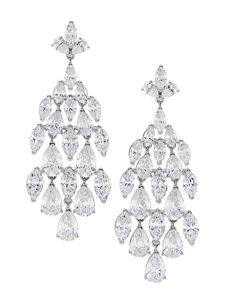 From the Feliz Collection. Adriana Orsinis Kite earrings are crafted of sterling silver. This statement-making style flaunts chandelier drops with mixed cubic zirconia stones for added sparkle and shine. Cubic zirconia Sterling silver Post back Imported SIZE About 2.2L. Fashion Jewelry - Adriana Orsini > Adriana Orsini > Saks Fifth Avenue > Barneys. Adriana Orsini. Color: Silver.