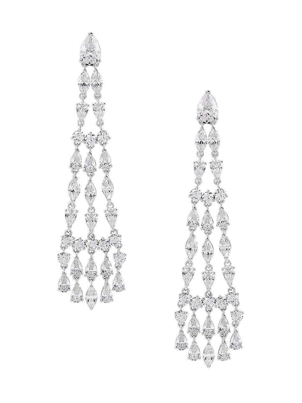 From the Feliz Collection. Adriana Orsinis Feliz earrings are crafted of sterling silver. This glamorous piece flaunts linear chandelier drops elevated with mixed prong-set cubic zirconia stones. Cubic zirconia Sterling silver Post back Imported SIZE About 2.75L. Fashion Jewelry - Adriana Orsini > Adriana Orsini > Saks Fifth Avenue > Barneys. Adriana Orsini. Color: Silver.