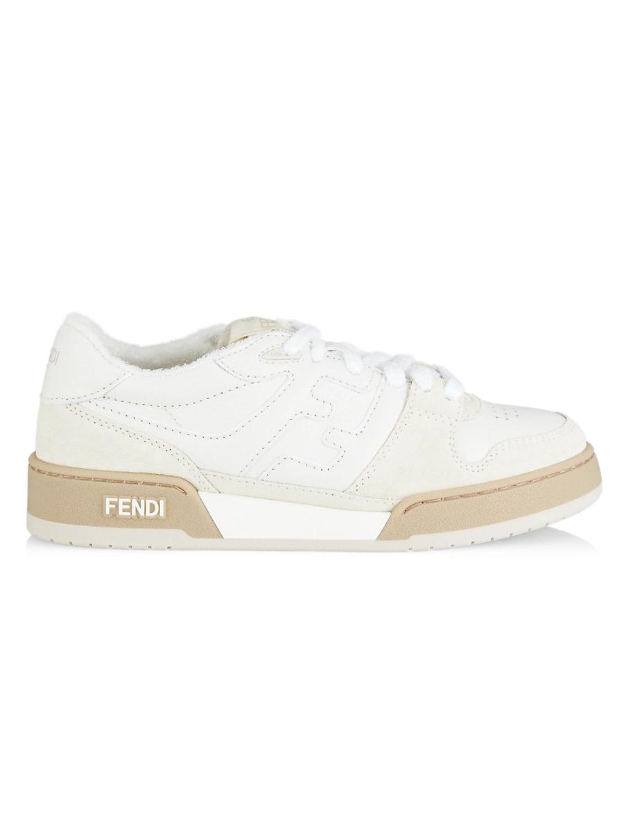 Mixed-media low-top sneaker flaunts the FF logo at sidewall featuring terry cloth laces and interior for added texture. Leather upper Round toe Lace-up vamp 69%polyester/28%polyamide/3% elastane Rubber sole Made in Italy SIZE Flat sole, 0.75 (20mm) ABOUT THE BRAND The epitome of elegance and fine craftsmanship, Fendi was founded in 1925 in Rome by Adele and Edoardo Fendi. Today, the founders granddaughter and Creative Director, Silvia Venturini Fendi, continues the houses emphasis on quality, tradition, experimentation and creativity. Womens Shoes - Fendi Womens Shoes > Fendi > Saks Fifth Avenue > Barneys. Fendi. Color: White. Size: 10.5.