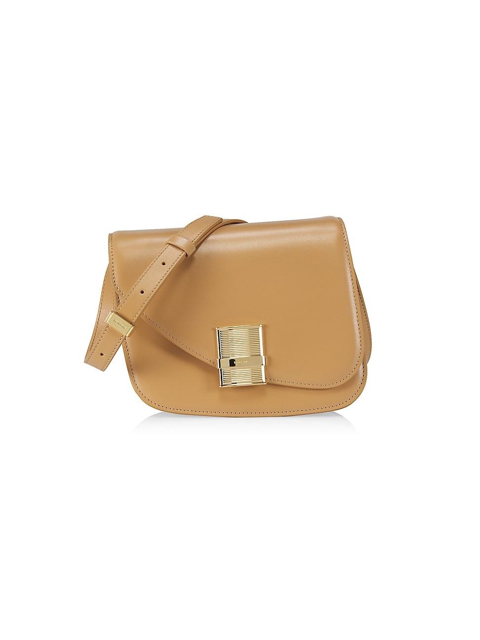 Ferragamo Fiamma crossbody bag in leather Adjustable crossbody strap Flap top with snap closure Divided interior; two card slots Approx. 6.1H x 7.5W x 3D Professional cleaning recommended Made in Italy
