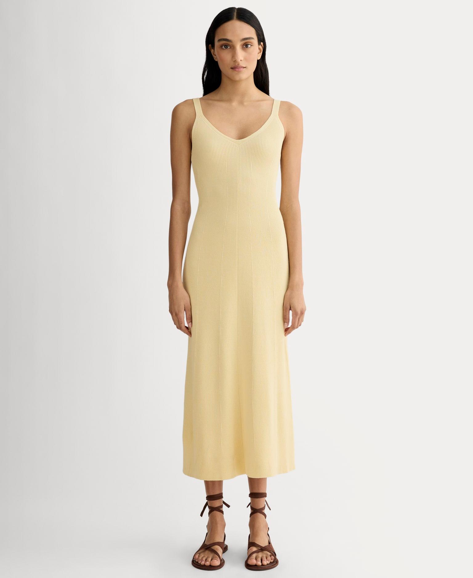 RE that dress you’ve been looking for. Featuring a front and back V-neck, its thin-yet-bra-friendly straps give just the right amount of shoulder/collarbone reveal. Detailing at the waist adds a little in-out to the silhouette, flowing into an A-line, midi-length skirt. Made with a viscose and certified organic cotton blend, it’s soft, slinky, and ready to add low-key polish to your everyday.