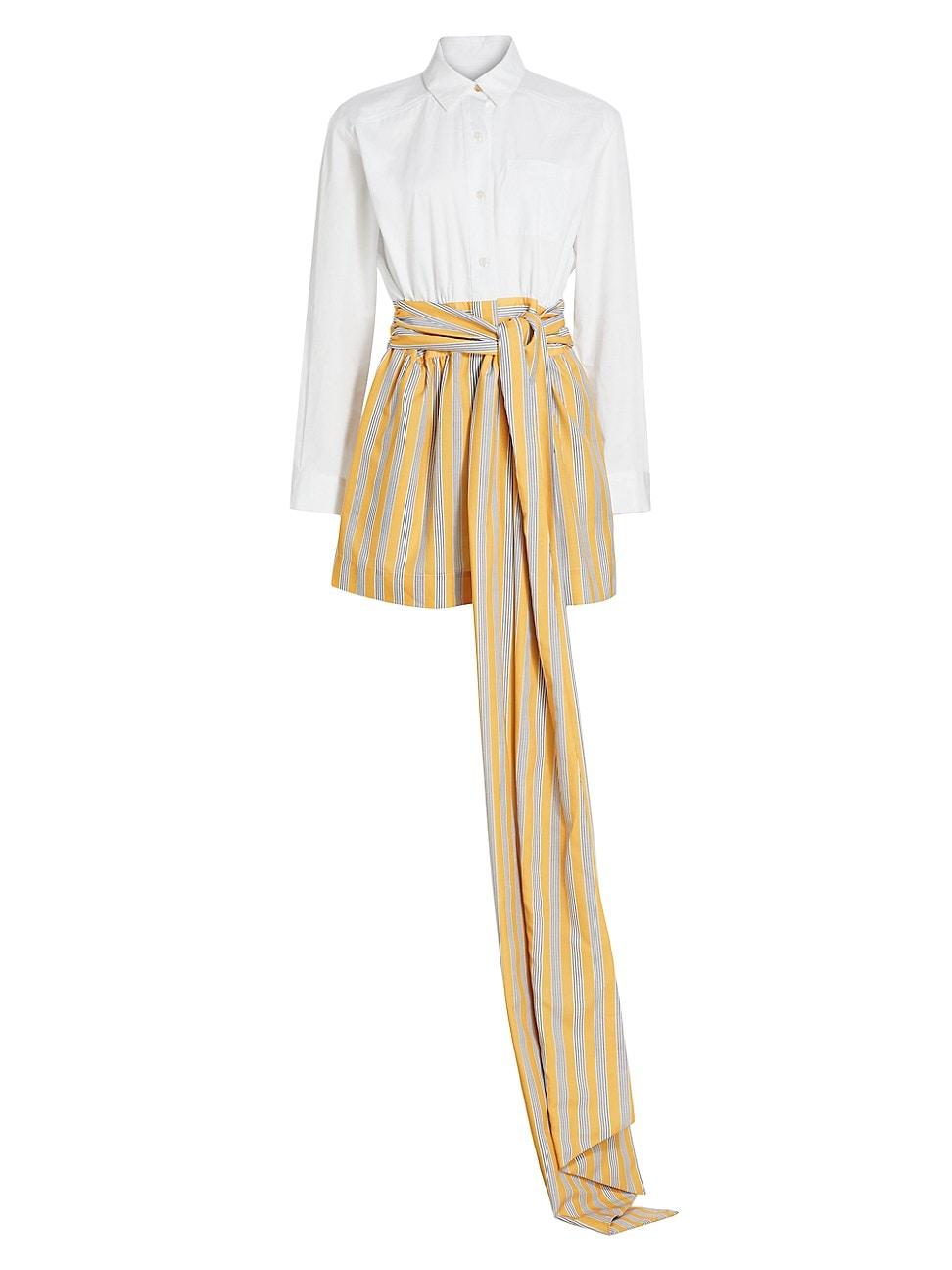 Toccins Fiona minidress epitomizes a classic button-up shirt and is elevated with a striped skirt featuring a sash tie at the waist. Spread collar Long sleeves, buttoned cuffs Button-front closure 100% polyester Combo: 100% cotton Lining: 100% polyester Machine wash Imported SIZE & FIT About 34.75 from shoulder to hem Model measurements: 510 tall Model is wearing a US size 4. Modern Collections - Branded Separates > Toccin > Saks Fifth Avenue > Barneys. Toccin. Color: Optic Marigold Stripe. Size: 10.