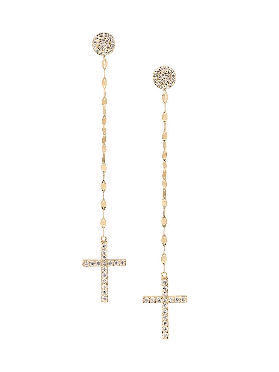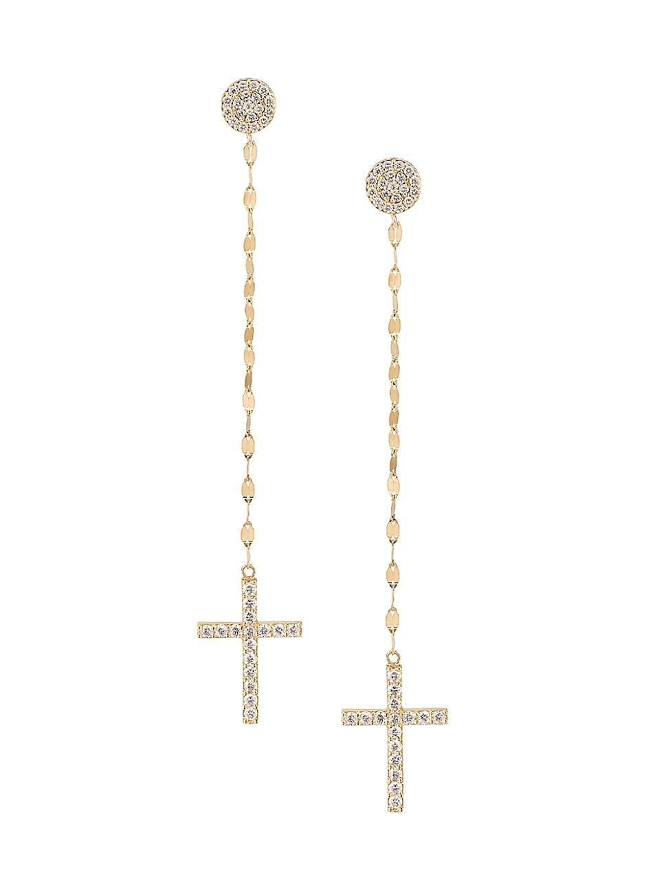 Glittering diamonds elevate Lanas flawless 14K yellow gold earrings, featuring statement-making linear cross drops. Diamonds, 1.02 tcw Diamond color: Gh Diamond clarity: Si 14K yellow gold Post backs Imported SIZE Drop, about 3.14. Fashion Jewelry - Fashion Designer > Lana > Saks Fifth Avenue > Barneys. Lana. Color: Yellow Gold.