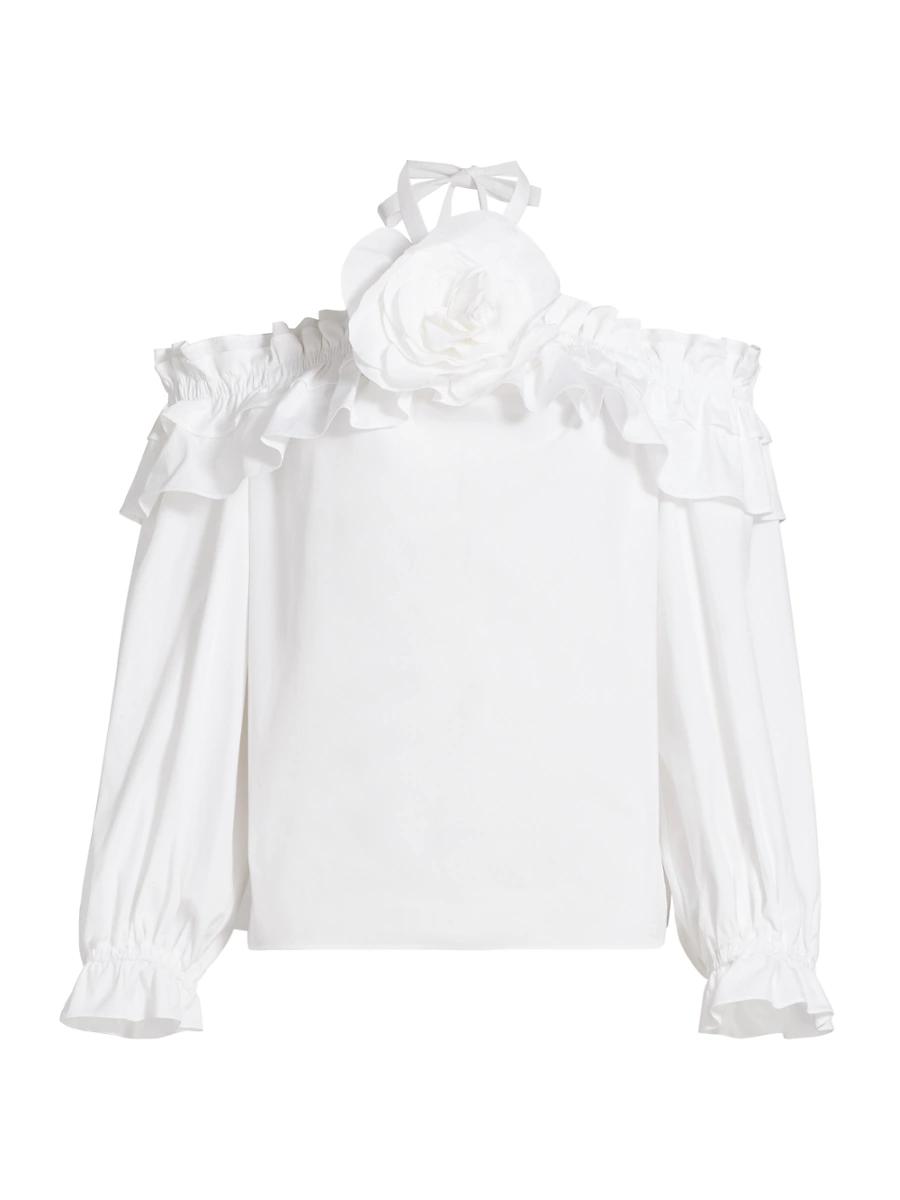 Crafted of a cotton blend, Carolina Herreras halter neck showcases an off-the-shoulder silhouette with a flower embellishment at the neck. Elasticized cuffs complete this look. Halter neck Off-the-shoulder Long sleeves, elasticized cuffs Pulls over 97% cotton/3% polyurethane Dry clean Made in USA SIZE & FIT This style is designed for a boxy fit About 15.5 from topline to hem Bust: about 40 Model measurements: 510 tall Model is wearing US size 4 ABOUT THE BRAND Carolina Herreras eponymous brand reflects her signature personal style. Since launching her line in 1981, the Venezuelan designer has won numerous accolades and landed many notable figures on best-dressed lists. Today, the labels Creative Director Wes Gordon delivers on the labels elegant aesthetic with sophisticated yet whimsical dresses, separates and accessories. Designer Evening - Herrera /CH > Carolina Herrera > Saks Fifth Avenue > Barneys. Carolina Herrera. Color: White. Size: 12.