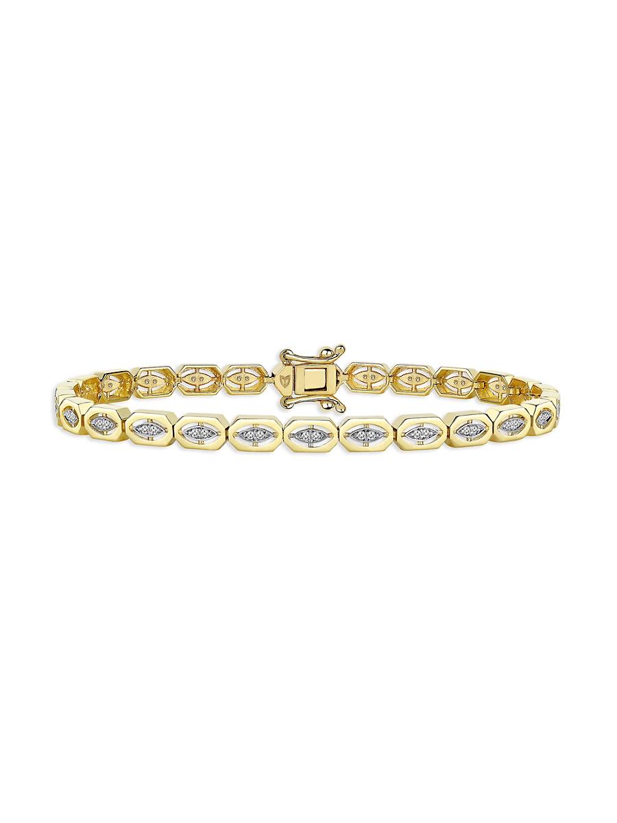 From the Focus Collection. Crafted of 14K yellow and white gold, MELIS GORALs elegant bracelet shimmers with petite round diamonds. Diamonds, 0.33 tcw Diamond color grade: G Diamond clarity grade: VS 14K yellow and white gold Box clasp with double safety latch. Imported SIZE About 6.7L. Fashion Jewelry - Semi Prec Coll C > Melis Goral > Saks Fifth Avenue > Barneys. Melis Goral. Color: Gold.