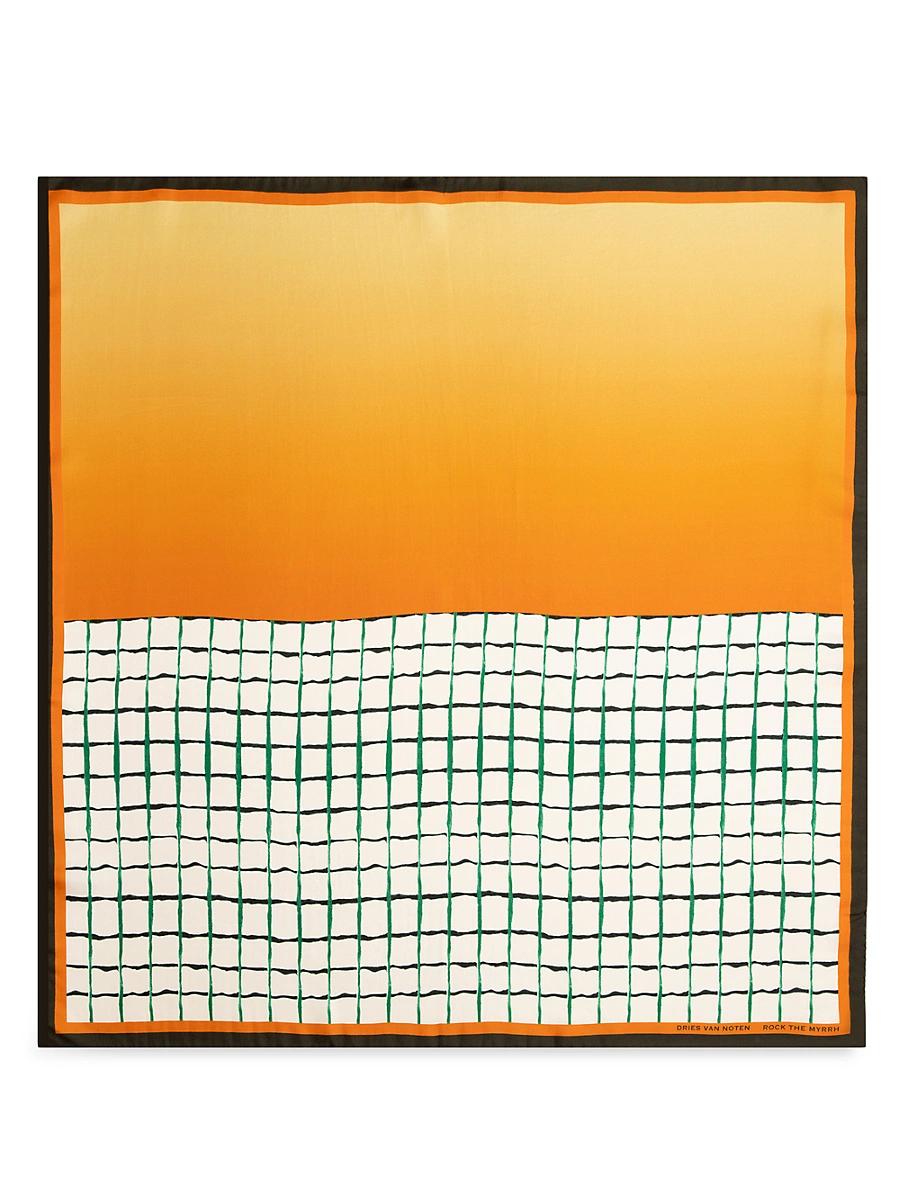 This beautifully crafted silk scarf was inspired by Dries Van Notens Rock The Myrrh Eau de Parfum. It features a bi-pattern ombr and contrasting grid design, resembling the intricate bottle of the parfum. 100% silk Dry clean Made in Italy SIZE 29.5W x 29.5H. Fragrances - Puig > Dries Van Noten > Saks Fifth Avenue > Barneys. Dries Van Noten. Color: Rock The Myrrh.