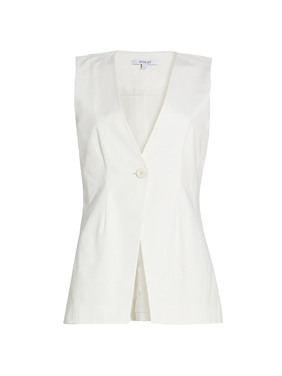 Derek Lam 10 Crosbys Francesca vest top highlights a deep V-neck balanced by a vented hem. This sleeveless piece is finished with a single-button closure. V-neck Sleeveless Button-front closure 51% cotton/49% lyocell Lining: 100% polyester Dry clean Imported SIZE & FIT About 27 from shoulder to hem Model measurements: 510 tall Model is wearing a US size 4 ABOUT THE BRAND Eight years after founding his eponymous brand, Derek Lam launched Derek Lam 10 Crosby in 2011, named after the address of his New York City office. Staying true to his downtown aesthetic, Lam designs feminine, relaxed pieces for all occasions. Contemporary Sportswear - Derek Lam 10 Crosby > Derek Lam 10 Crosby > Saks Fifth Avenue > Barneys. Derek Lam 10 Crosby. Color: Blanc De Blanc. Size: 12.