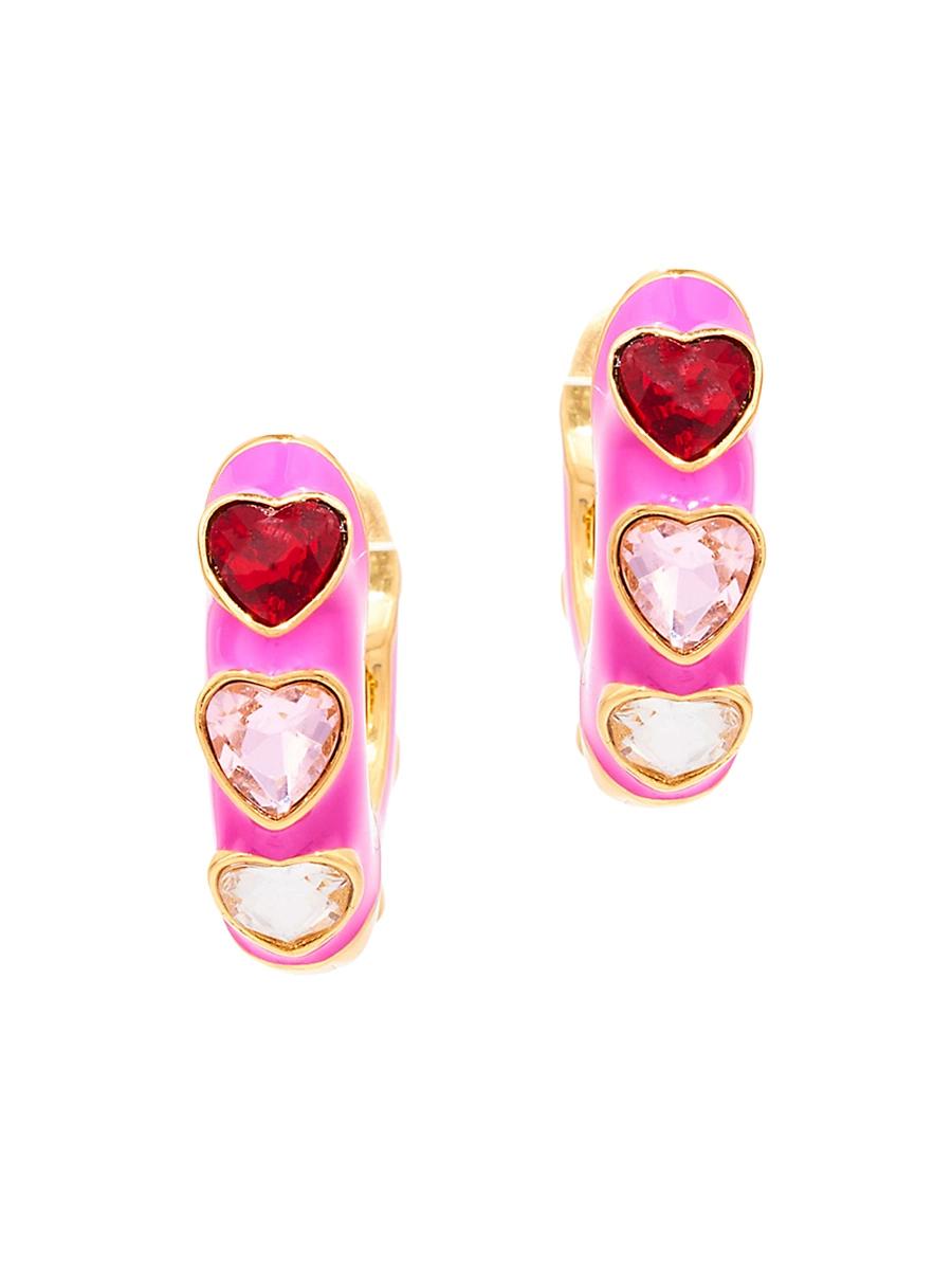 Featuring romantic heart motifs, Mignonne Gavigans 14K-gold-plated Freyja hoop earrings are embellished with pink enamel and sparkling glass crystals. Glass crystals Enamel 14K-gold-plated brass Surgical steel post back Imported SIZE About 1 diameter. Fashion Jewelry - Trend Jewelry > Mignonne Gavigan > Saks Fifth Avenue > Barneys. Mignonne Gavigan. Color: Pink Multi.