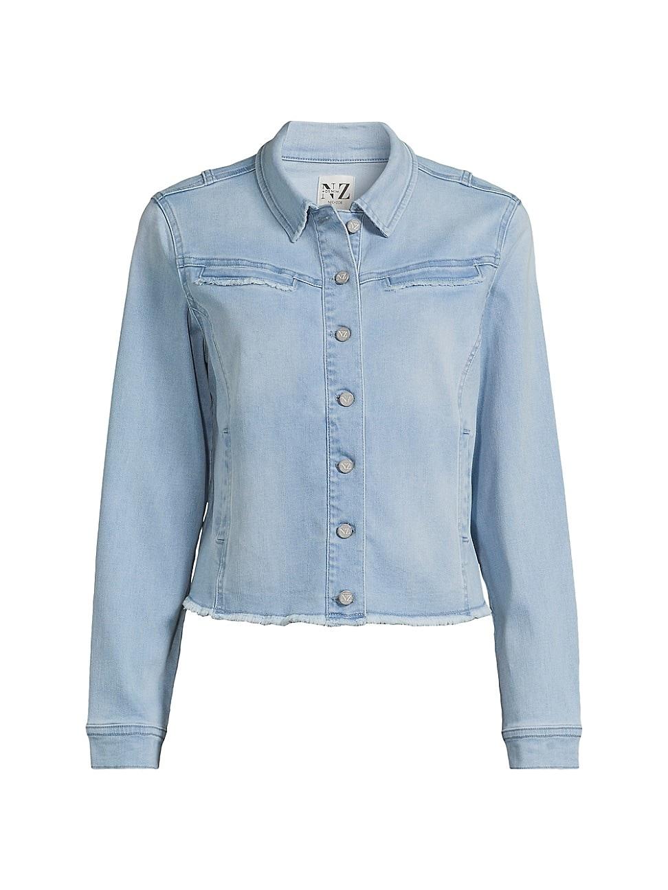NIC+ZOE offers a denim jacket featuring functional pockets, faux slash pockets, and a raw hem with fringe. Point collar Long sleeve Button-front closure 52% cotton/36% rayon/10% polyester/2% spandex Machine wash Imported SIZE & FIT About 21.5 from shoulder to hem Model measurements: 510 tall Model is wearing a US size 4. Modern Collections - Branded Separates > Nic+zoe > Saks Fifth Avenue > Barneys. NIC+ZOE. Color: Breeze. Size: Large.