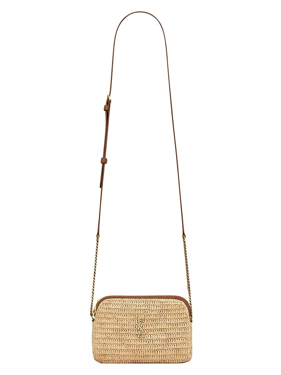 Zipped pouch in woven raffia decorated with the Cassandre, made with metal-free tanned leather. Bronze-toned hardware Raffia & vegetable tanned leather Zip closure Dimensions: 18 x 13 x 3.5 cm / 7.1 x 5.1 x 1.4 Strap Drop: 57 cm / 22.4 Made in Italy. Lsd Handbags - Saint Laurent > Saint Laurent > Saks Fifth Avenue > Barneys. Saint Laurent. Color: Natural Brick.