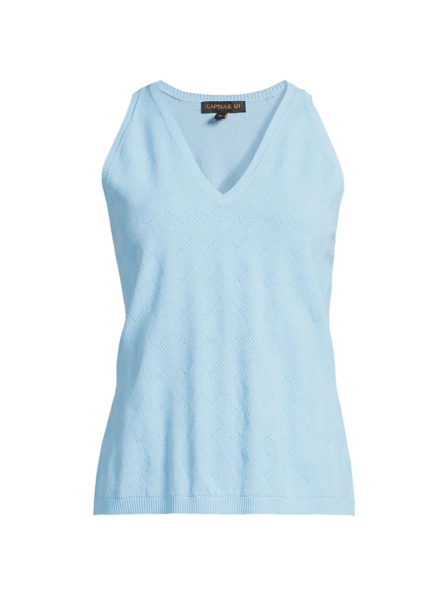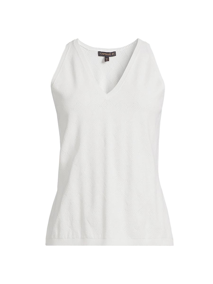 From the Galaxies Collection. The Capsule 121s Princeton sleeveless sweater is styled with a V-neck and rib-knit trim. V-neck Sleeveless Ribbed trim Pulls over 83% viscose/17% polyester Machine wash Imported SIZE & FIT About 22.5 from shoulder to hem Model measurements: 510 tall Model is wearing a US size Small. Modern Collections - Branded Separates > Capsule 121 > Saks Fifth Avenue > Barneys. Capsule 121. Color: Chalk. Size: XL.