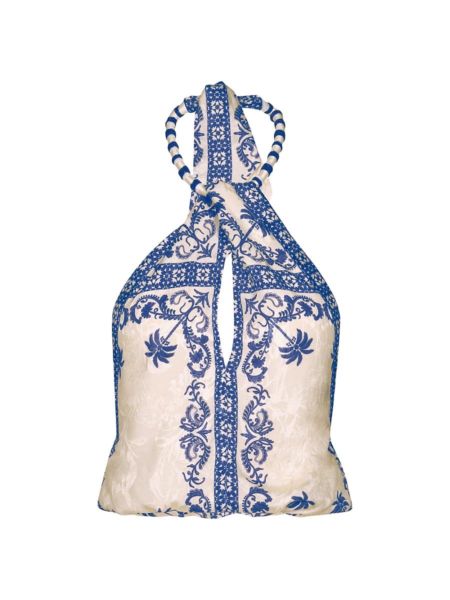 From the Galena Collection. The Cantos Andaluz top from Johanna Ortiz is designed with intricate embroidery and a structured halter neckline. Halterneck Self-tie halter straps Front keyhole cut out Elasticized bubble hem Pulls over 100% viscose Lining: 100% polyester Dry clean Imported of Italian fabric SIZE & FIT About 17.25 from shoulder to hem Model measurements: 510 tall Model is wearing a US size 4. Designer Lifestyle - Johanna Ortiz > Johanna Ortiz > Saks Fifth Avenue > Barneys. Johanna Ortiz. Color: Ecru. Size: 8.