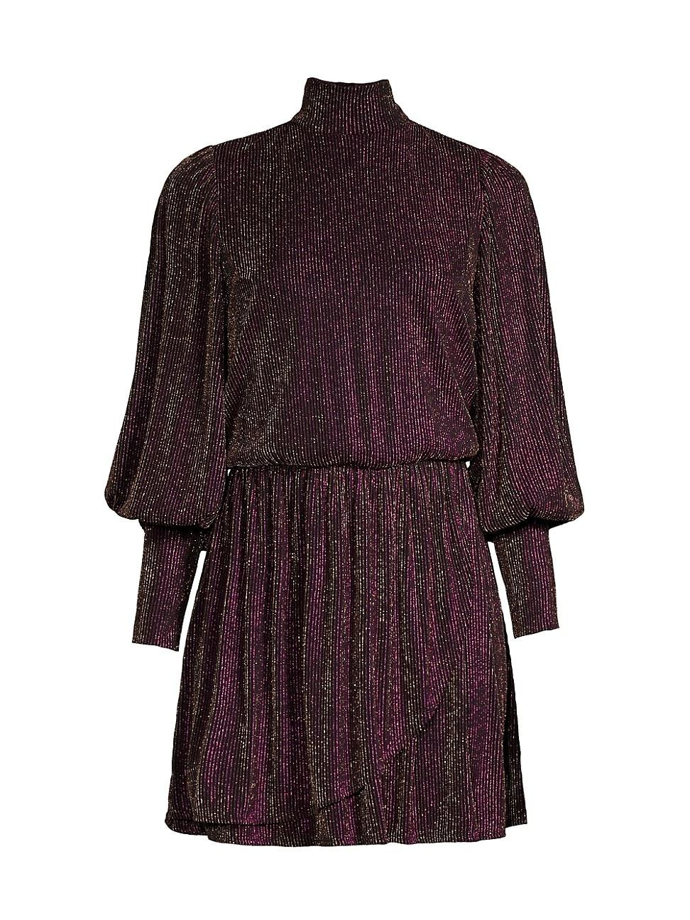 Showcasing a relaxed bodice and gathered waist, this Gavin minidress from Black Halo is crafted of shimmering ribbed-knit fabric. It is punctuated by a mock turtleneck and poet sleeves. Mock turtleneck, tie closure Long poet sleeves, banded cuffs Pulls over 80% nylon/14% metallic fibers/6% spandex Lining: 96% polyamide/4 % elastane Dry clean Made in USA SIZE & FIT About 34 from shoulder to hem Model measurements: 510 tall Model is wearing a US size 4. Dress Collections - Contemporary Evening > Black Halo > Saks Fifth Avenue > Barneys. Black Halo. Color: Golden Razzle. Size: 0.