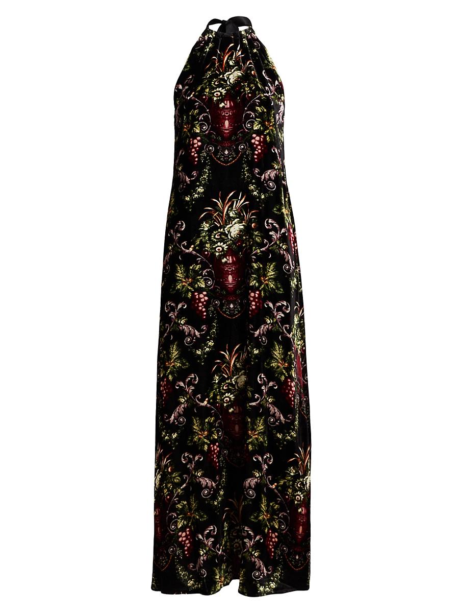 Finished in a charming floral print, Cara Caras Geneva halter gown showcases a dropped back and an A-line silhouette. Halterneck Sleeveless Back self-tie closure Back zip closure 82% rayon/18% silk Lining: 100% polyester Dry clean Imported SIZE & FIT This style is designed for a relaxed fit About 57 from topline to hem Model measurements: 510 tall Model is wearing a US size Small. Contemporary Sportswear - Trend > Cara Cara > Saks Fifth Avenue > Barneys. Cara Cara. Color: Black Fleur. Size: Medium.