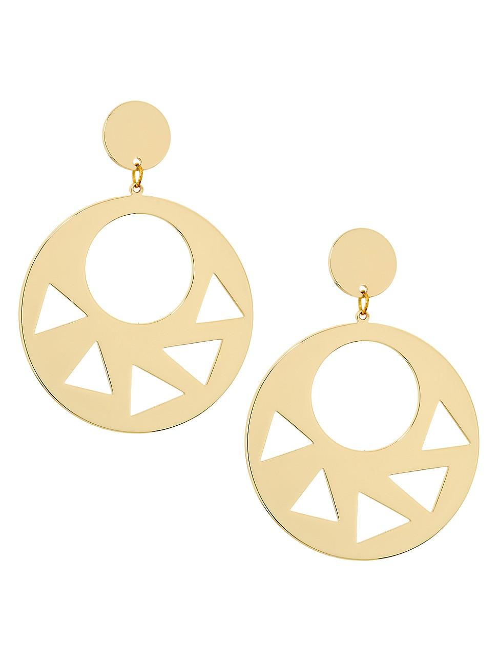 From the Geometrical Hoops Collection. Ramy Brooks goldtone Dayana earrings have a polished finish. The drop silhouette is adorned with geometric cutouts. Goldtone Post back Imported SIZE About 2.5L. Fashion Jewelry - Trend Jewelry > Ramy Brook > Saks Fifth Avenue > Barneys. Ramy Brook. Color: Gold.