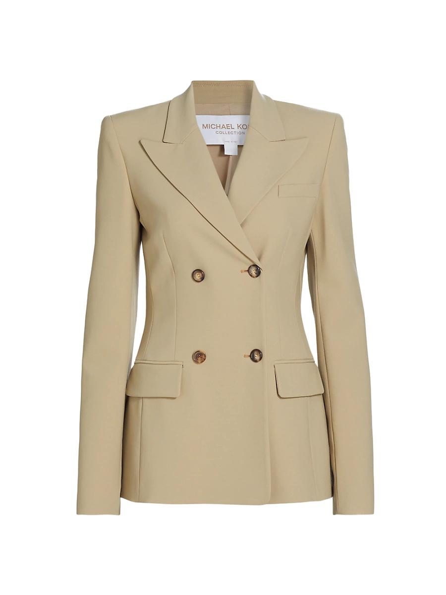 Cut for a tailored fit, the Georgina wool blazer from Michael Kors features double-breasted buttons and flap pockets. Wide peak lapels complete this Italian-made piece. Peak lapels Long sleeves, button cuffs Chest welt pocket Side flap pockets 100% virgin wool Self-lined Dry clean Made in Italy SIZE & FIT Model measurements: 510 tall Model is wearing a US size 4 ABOUT THE BRAND Since launching his eponymous brand in 1981, Michael Kors has been taking the fashion world by storm with his luxury accessories and ready-to-wear. With multiple labels under his name, Kors designs remain glamorous and effortless-and now include jewelry, handbags, shoes and eyewear. Designer Lifestyle - Michael Kors > Michael Kors Collection > Saks Fifth Avenue > Barneys. Michael Kors Collection. Color: Sand. Size: 0.