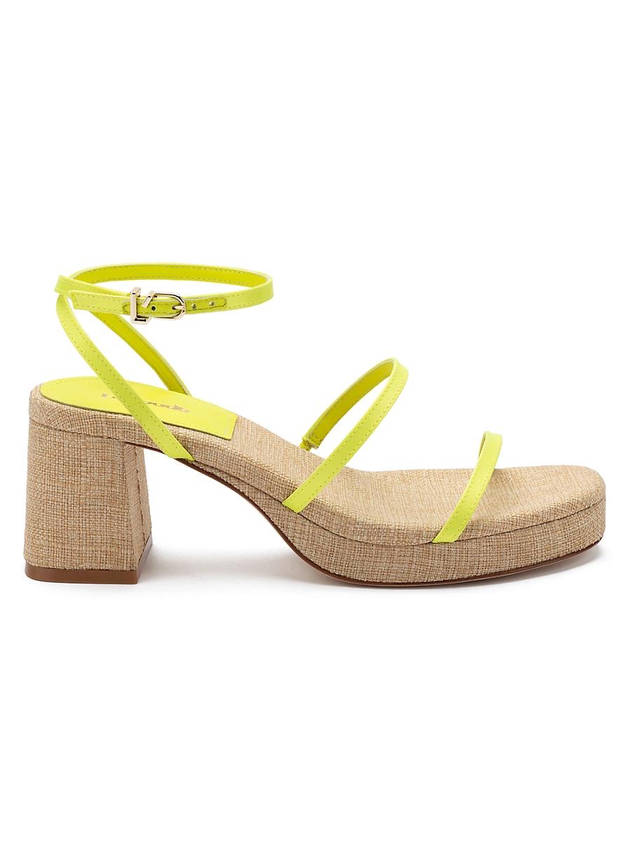 The Gio sandals from Larroud incorporate a strappy satin upper and a raffia platform. Textile upper Open toe Adjustable buckle closure Leather sole Made in Italy SIZE Block heel, 2.25 (60mm) Platform height, 0.5. Womens Shoes - Contemporary Shoes > Larroud > Saks Fifth Avenue > Barneys. Larroud. Color: Lemon. Size: 5.5.