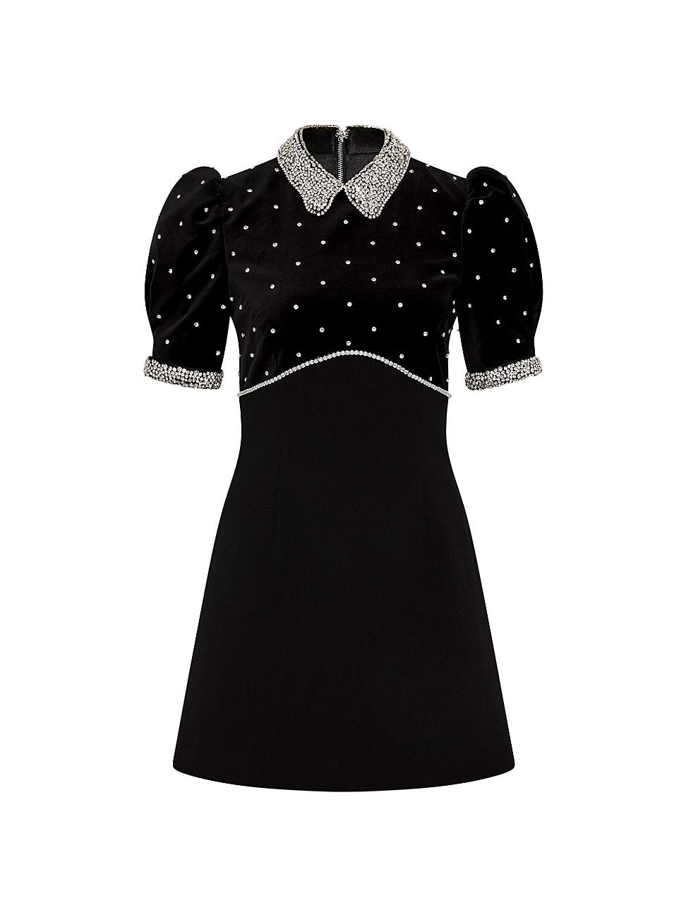 Crafted of a lustrous velvet, Rebecca Valances Giovanna minidress features a fitted bodice decorated with sparkling crystals and short puff sleeves. Spread collar Short puff sleeves Back zip closure 98% polyester/2% elastane Dry clean Imported SIZE & FIT About 31.4 from shoulder to hem Model measurements: 510 tall Model is wearing a US size 4. Dress Collections - Contemporary Evening > Rebecca Vallance > Saks Fifth Avenue > Barneys. Rebecca Vallance. Color: Black. Size: 0.
