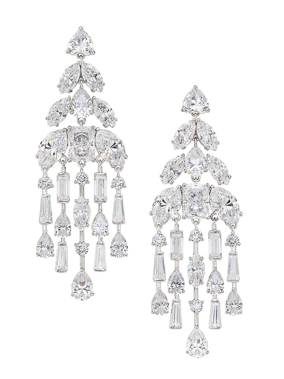 From the Glitz Collection. Made of polished rhodium-plated sterling silver, Adriana Orsinis chandelier earrings sparkle with cubic zirconia in mixed cuts, sizes, and shapes. This glamorous pair beautifully complements any formal attire. Cubic zirconia, 42.72 tcw Rhodium-plated sterling silver Post back Imported SIZE Drop, about 2.5 Width, about 0.88. Fashion Jewelry - Adriana Orsini > Adriana Orsini > Saks Fifth Avenue > Barneys. Adriana Orsini. Color: Rhodium.