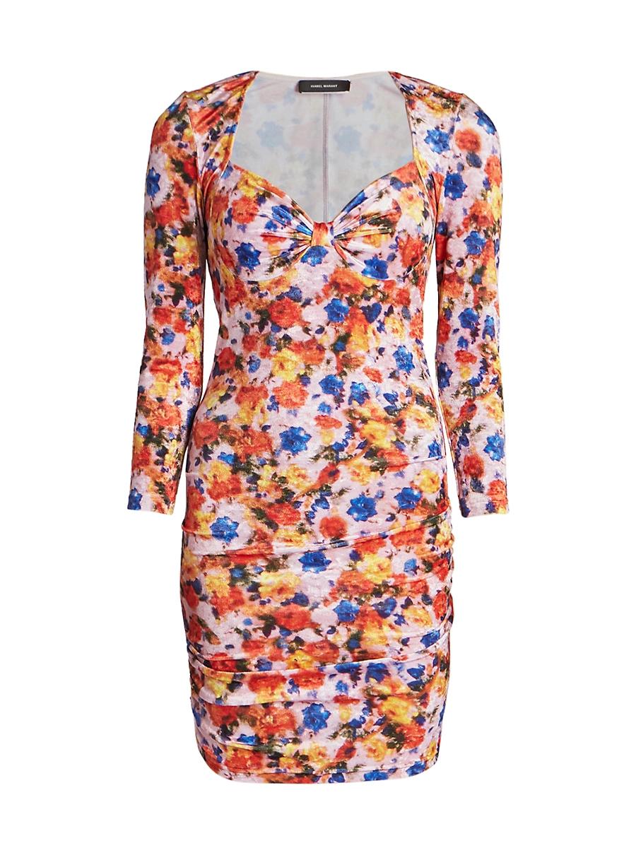 Boasting a floral print, Isabel Marants Goji ruched velvet minidress features a V-neck and long sleeves. V-neck Long sleeves Pullover style 85% polyamide/15% elastane Bias: 96% cotton/4% elastane Lining1: 100% viscose Dry clean Imported SIZE & FIT Model measurements: 510 tall Model is wearing a US size Small ABOUT THE BRAND Anyone looking for a laid-back blend of bohemian and Parisian-chic knows to turn to Isabel Marant. Since 1994, her namesake label has been the go-to for textured knitwear, flowing dresses and Western-inspired accessories. Advanced Designer - Designer Emerging Brands > Isabel Marant > Saks Fifth Avenue > Barneys. Isabel Marant. Color: Orange. Size: 4.