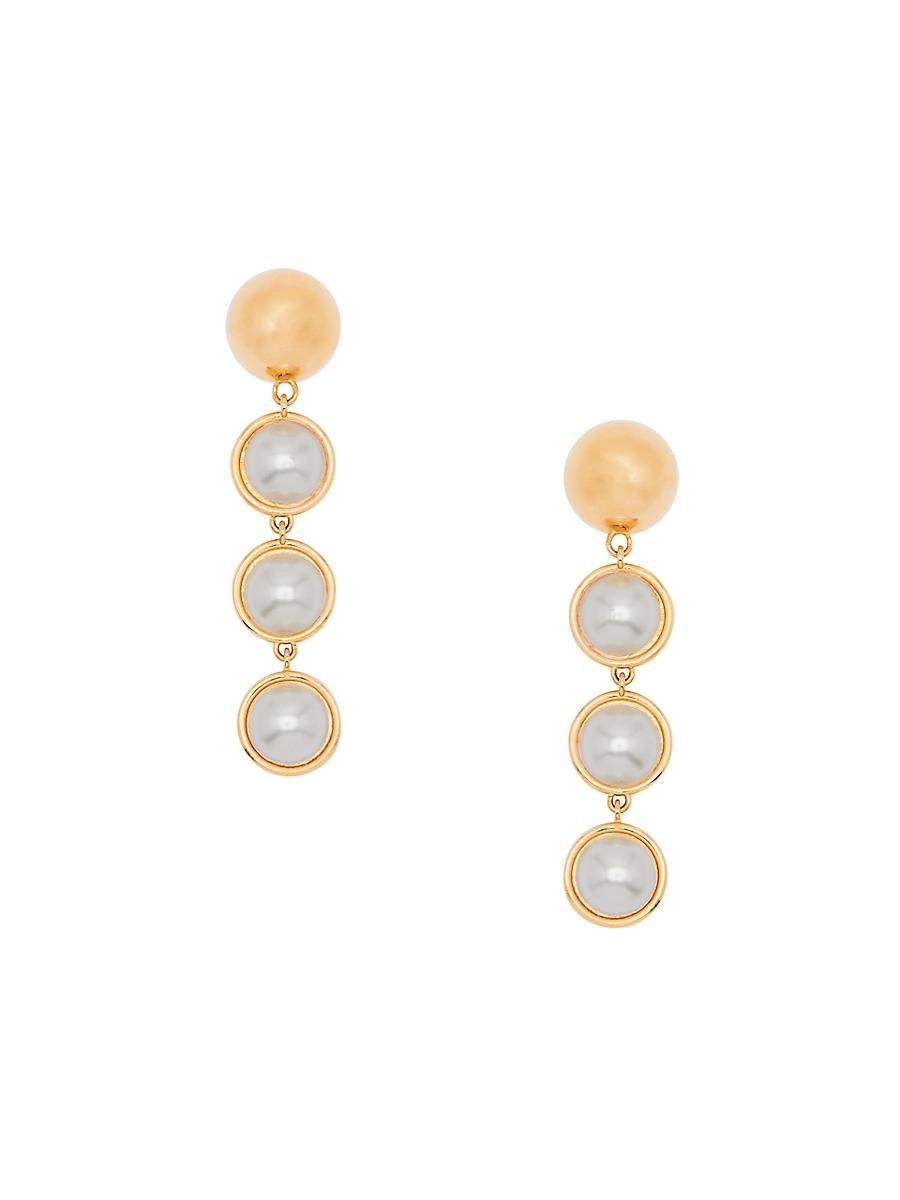 These Oscar de la Renta goldtone drop earrings are styled with bezel set domed faux pearls. Faux pearls Brass Made in Italy SIZE About 0.55W x 2L ABOUT THE BRAND After working for some of fashions greatest designers, Oscar de la Renta started his own line in 1965. He was an instant hit, thanks to his penchant for romantic silhouettes in vibrant colors and prints. His iconic legacy lives on through Creative Directors Fernando Garcia and Laura Kims stunning vision for the brands ready-to-wear and accessories. Fashion Jewelry - Trend Jewelry > Oscar De La Renta > Saks Fifth Avenue > Barneys. Oscar de la Renta. Color: Pearl.