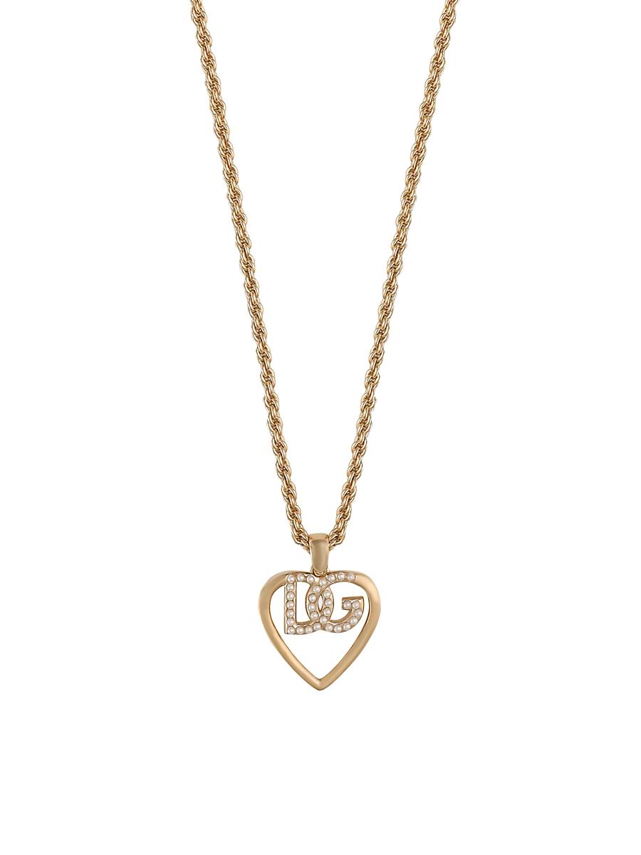 Dolce & Gabbanas goldtone necklace features an open monogram heart pendant studded with luminous white imitation pearls. Imitation pearls Brass Lobster clasp Made in Italy SIZE Chain: adjustable 26L ABOUT THE BRAND Mediterranean-inspired prints and luxe silhouettes are mainstays of the Italian label, launched in 1985 by Domenico Dolce and Stefano Gabbana. The eye-catching line includes a lineup of sleek clothing and maximalist shoes and handbags. Fashion Jewelry - Trend Jewelry > Dolce & gabbana > Saks Fifth Avenue > Barneys. Dolce & Gabbana. Color: Yellow Gold.