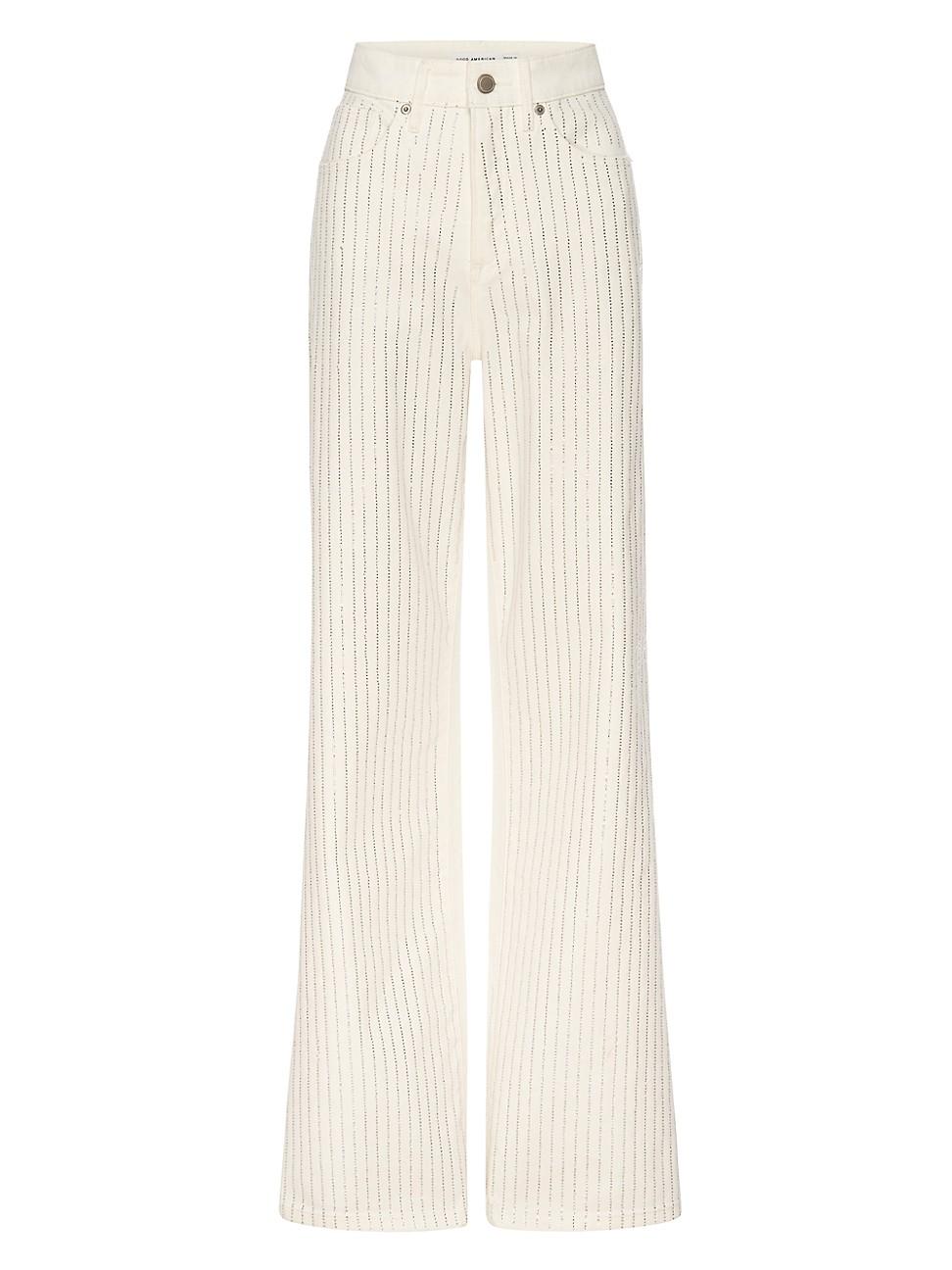 The Good Ease wide-leg jeans by GOOD AMERICAN dazzle with a rhinestone embellished pinstriped pattern. Belt loops Five-pocket style Zip fly 99% cotton/1% elastane Hand wash Imported SIZE & FIT Model measurements: 510 tall Model is wearing a US size 4. Contemporary Sportswear - Denim And Bottoms > Good American > Saks Fifth Avenue > Barneys. Good American. Color: Cloud White. Size: 2.