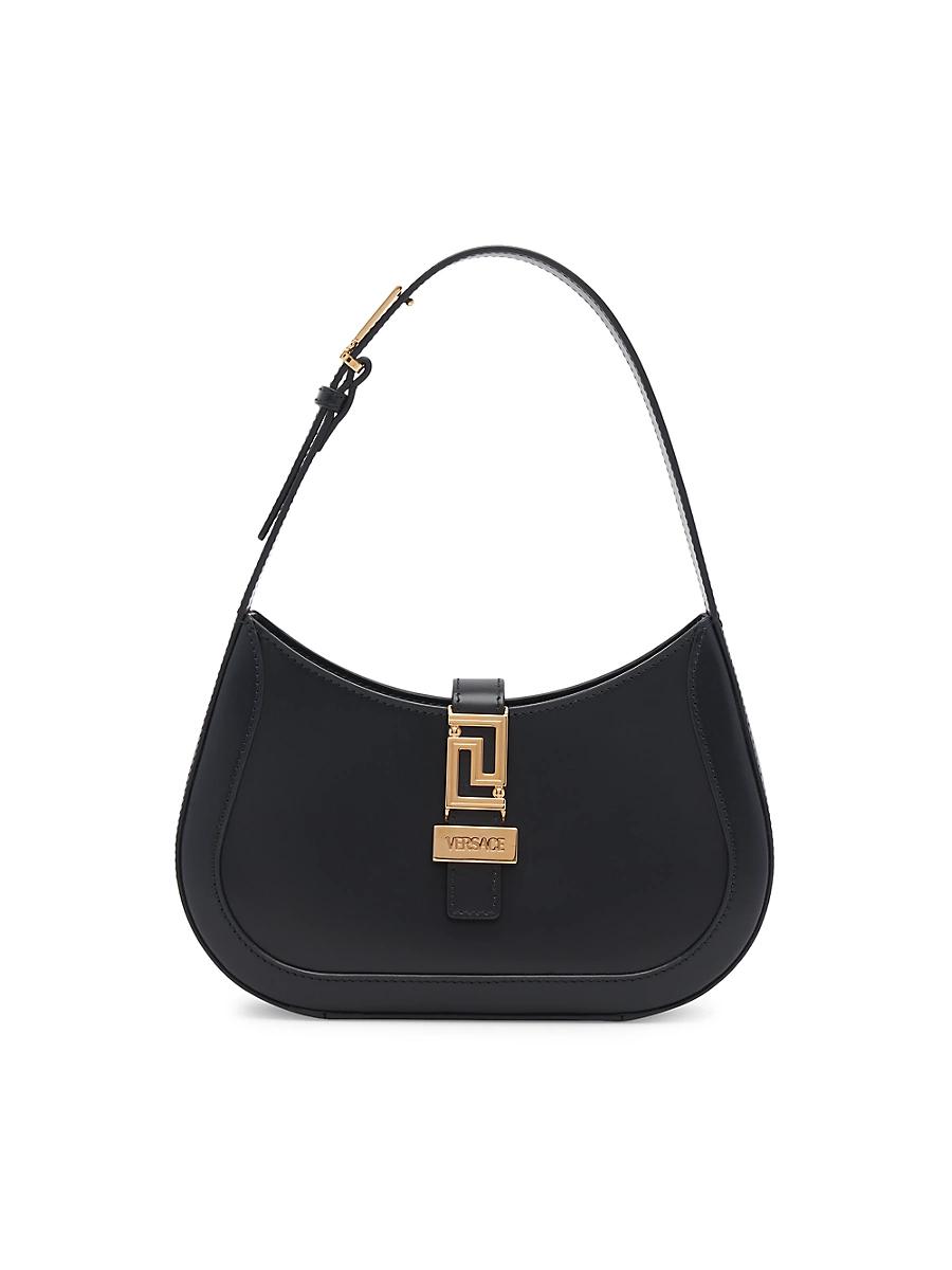 Versaces Greca small hobo bag features an adjustable strap with a logo buckle, an interior slip pocket, and a magnetic closure. Adjustable strap Greca logo buckle Interior: one slip pocket Flap with magnetic closure Textile Trim: leather Made in Italy SIZE About 2W x 9.8H x 5.1D ABOUT THE BRAND Founded in 1978, Versace is instantly recognizable by the signature Medusa head logo, chosen by founder Gianni Versace for its Greek symbolism. The Italian label is known for its luxe, bold clothing and accessories-think gilding, oversized logos and punchy prints. Since taking over artistic direction, Giannis sister Donatella Versace has maintained the brands strong identity, with a renewed vision to give customers the ultimate freedom to express themselves. Handbags - Italian Designers > Versace > Saks Fifth Avenue > Barneys. Versace. Color: Optical White.
