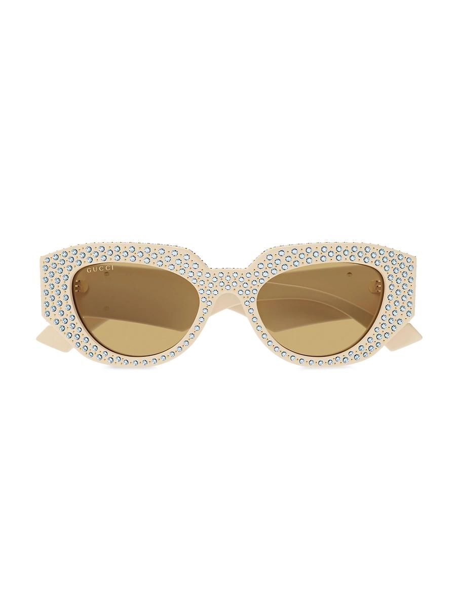 Gucci Geometrical Directional Sunglasses in Ivory & Brown - Cream. Size all. Crystal embellished acetate frames. Made in Italy. Lens measures approx 51mm. Bridge measures approx 20mm. Arm measures approx 145mm. Hard case and cleaning cloth included. GUCC-WG29. GG1421S-005. About the designer: Originally founded by Guccio Gucci in 1921, Gucci has become a go-to source for luxury leather goods as well as womenswear, menswear, and accessory collections. Under the romantic and eclectic direction of Alessandro Michele, Gucci is redefining luxury for the 21st century and represents the pinnacle of Italian craftsmanship. These collections include some of fashion’s most sought-after pieces. Look out for our edit of Swiss-made fine watches, beautifully crafted from precious metals, mother-of-pearl and studded with diamonds.