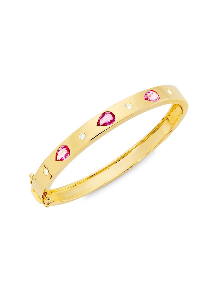 ONLY AT SAKS. Saks Fifth Avenue Collections polished Gypsy bangle is crafted of 14K yellow gold, flaunting bezel-set pear-shaped pink sapphires interspersed with round diamonds. Pink sapphire Diamond, 0.248 tcw Diamond color: D-g Diamond clarity: vs-si 14K yellow gold Latch clasp Imported SIZE Diameter, about 2.25. Fashion Jewelry - Sfa Jewelry > Saks Fifth Avenue Collection > Saks Fifth Avenue > Barneys. Saks Fifth Avenue Collection. Color: Yellow Gold.