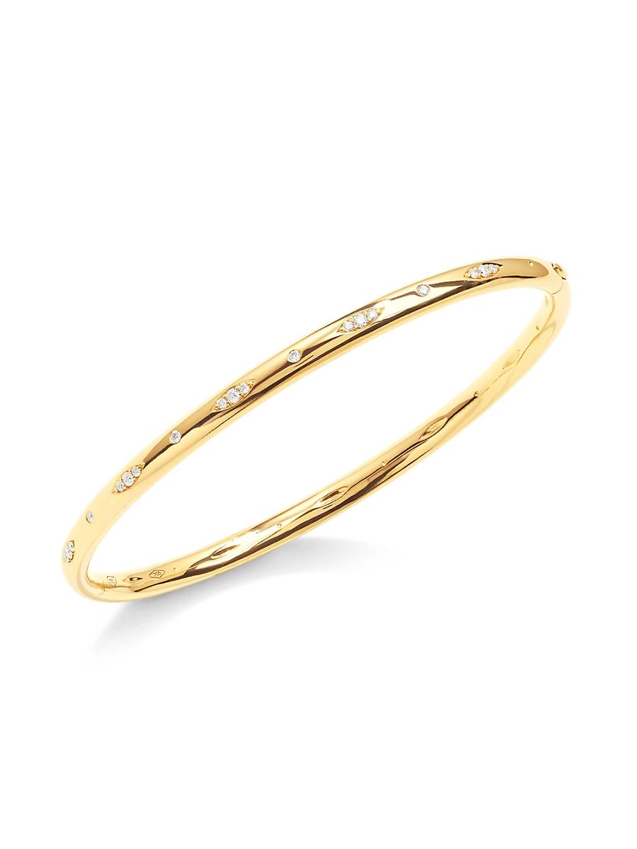 From the Gypsy Collection. Gleaming gold bangle features sparkling diamonds set individually and as a navette. Dazzling on its own or stacked with other Gypsy bangles. Brilliant-cut white diamonds, 0.37 tcw Diamond color: G Diamond clarity: SI 18K yellow gold, 16.5 grams Tongue-and-groove latch Made in Germany SIZE Circumference, about 6.7. Fine Jewelry - Designer Jewelry A > Tamara Comolli > Saks Fifth Avenue > Barneys. Tamara Comolli. Color: Yellow Gold.