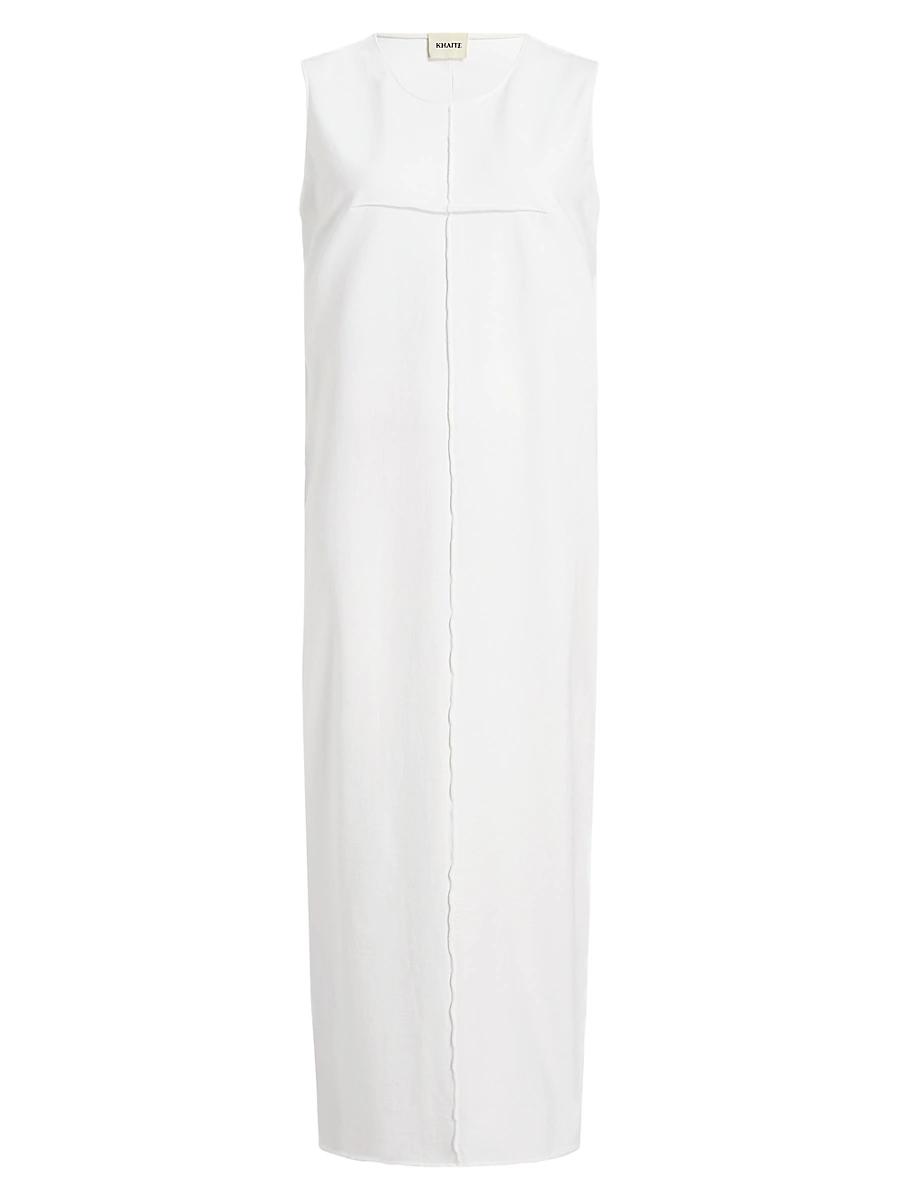 Crafted of cotton, Khaites Hal oversized maxi dress is styled with a round neck and central seam for added structure. Round neck Sleeveless Back slit Pulls over 100% cotton Dry clean Made in Portugal SIZE & FIT Model measurements: 510 tall Model is wearing a US size Small. Designer Lifestyle - Khaite > Khaite > Saks Fifth Avenue > Barneys. Khaite. Color: White. Size: Small.