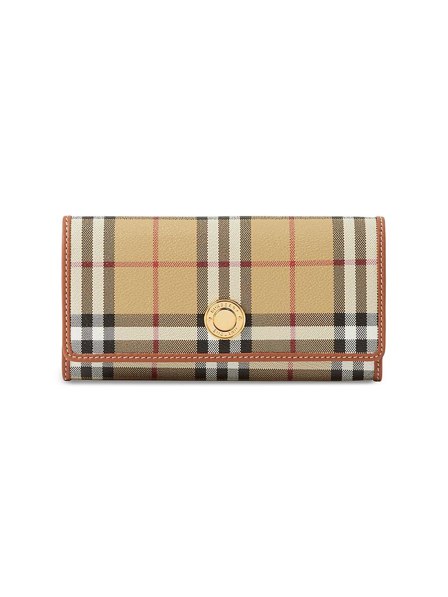 Exemplifying Burberrys commitment to timeless elegance, the Halton continental wallet is a sophisticated accessory for the modern individual. This compact piece features the brands signature check, adding an extra touch of luxury. Snap closure Leather trim Imported SIZE About 7.7W x 3.9H x 1.2D ABOUT THE BRAND Founded in 1856 by 21-year-old Thomas Burberry, the brand set out with a mission to stylishly protect against British weather-and Burberrys iconic trench coat was born. In the 1920s, its renowned check pattern was introduced as the coats lining. Today, under Creative Director Daniel Lee, the heritage brand continues to evolve and create timelessly classic mens, womens and kids pieces, along with beauty. Handbags - Burberry Handbags > Burberry > Saks Fifth Avenue > Barneys. Burberry. Color: Archive Beige.