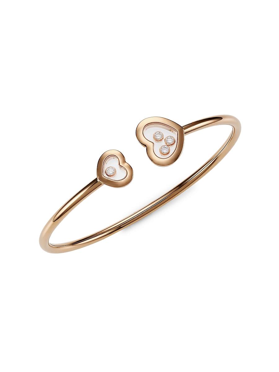 From the Happy Sport Collection. Slim 18K rose gold bangle finished with two heart-shaped end is highlighted with four moving diamonds. Diamond, 0.20 tcw 18K rose gold Made in Germany SIZE Diameter, about 6.1 ABOUT THE BRAND In 1860, artisan watchmaker Louis-Ulysse Chopard founded the renowned jewelry brand in Sonvilier, Switzerland. The company is known for its legendary Swiss watches and classic high fine jewelry designed to last a lifetime. Fine Jewelry - Chopard Watches And Jewe > Chopard > Saks Fifth Avenue > Barneys. Chopard. Size: Medium.