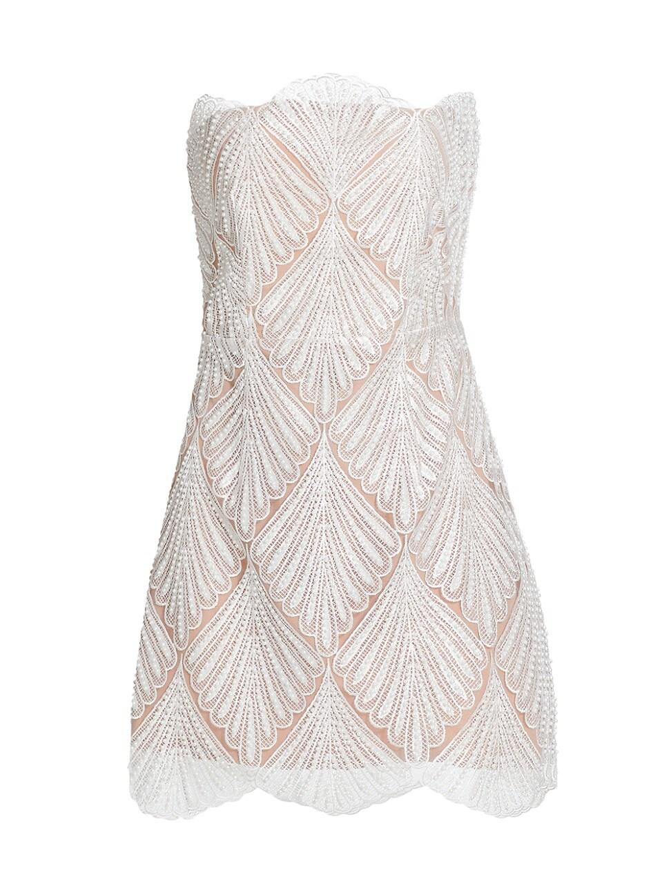 From the Bride & Guest Collection. Elliatts glamourous Harper strapless minidress showcases intricate sequin and beaded embellishments. Featuring a scalloped hem, this piece is elevated with romantic shell lace. Scalloped bandeau neck Strapless Scalloped hem Concealed back zip closure 100% polyester Dry clean Imported SIZE & FIT About 32 from topline to hem Bust: about 34 Waist: about 28 Hips: about 37 Model measurements: 510 tall Model is wearing a US size Small. Dress Collections - Contemporary Evening > Elliatt > Saks Fifth Avenue > Barneys. Elliatt. Color: Ivory Beige. Size: Medium.