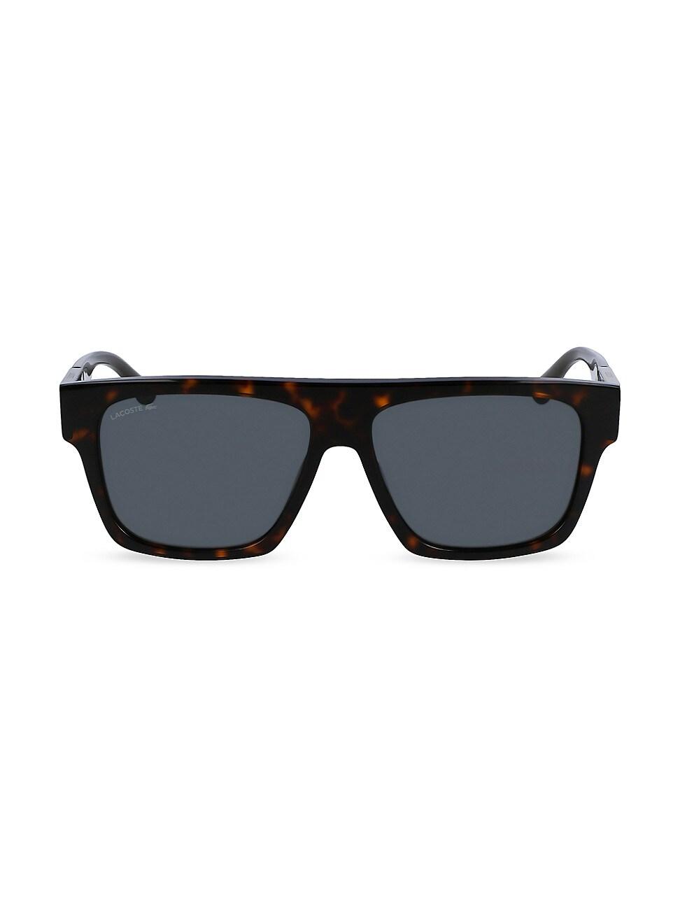 From the Premium & Heritage collection. Lacostes sunglasses are styled in a rectangular silhouette and feature UV-protective solid lenses. This pair details silvertone-accented temples. 100% UV protection Solid lenses Includes case and cleaning cloth Plastic Imported SIZE 57mm lens width 14mm bridge width 145mm temple length. Soft Accessories - Men Sunglasses > Lacoste > Saks Fifth Avenue > Barneys. Lacoste. Color: Dark Havana.
