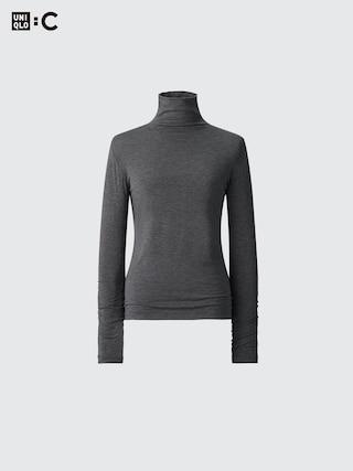Lightweight, slightly sheer fabric and slightly longer sleeves for easy layering. Womens HEATTECH Cashmere Blend T-Shirt Extra Warm Turtleneck Gray Medium UNIQLO US