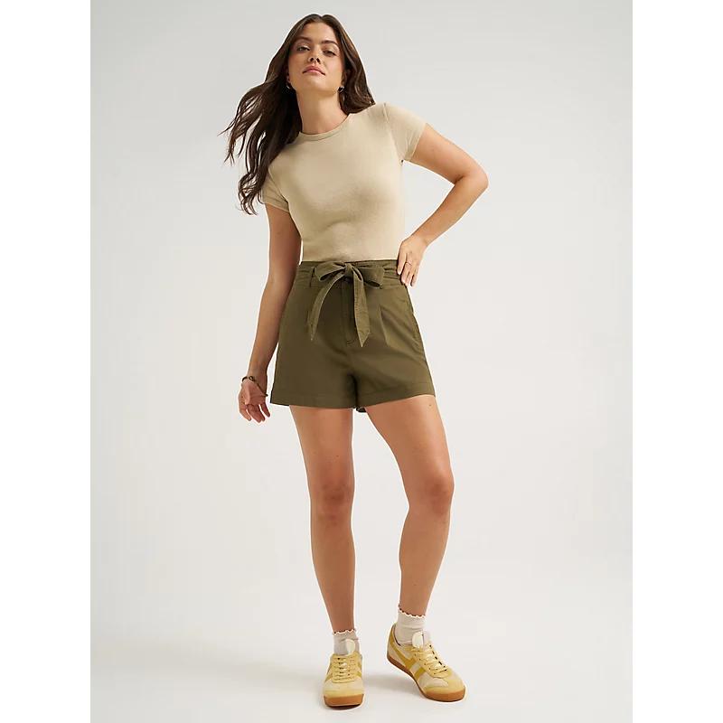 The best things come wrapped in a bow. These shorts start with a high-rise waist that falls into a 3.5” inseam, for a vintage look with a modern feel. Outfitted with front pleats and cinched with an oversized bow at the front, it’s the kind of short that keeps on giving. 99% Cotton, 1% Elastane. Olive Moss. 16 W / 3 1 / 2 Inches.