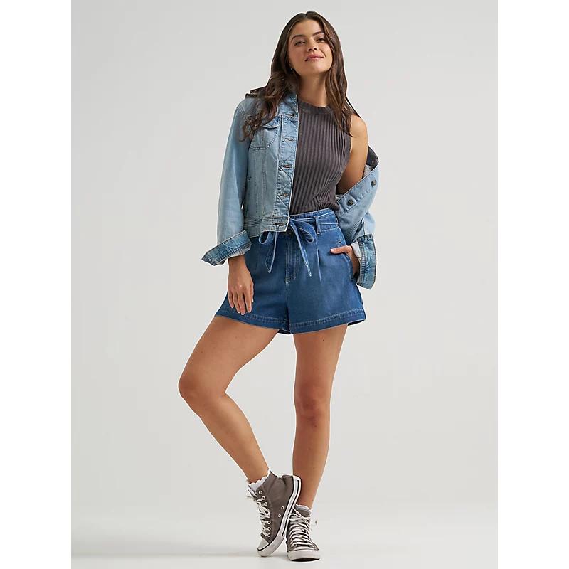 The best things come wrapped in a bow. These denim shorts start with a high-rise waist that falls into a 3.5” inseam, for a vintage look with a modern feel. Outfitted with front pleats and cinched with an oversized bow at the front, it’s the kind of short that keeps on giving. 89% Cotton, 11% Elastomultiester. Full Bloom. 6 W / 3 1 / 2 Inches.