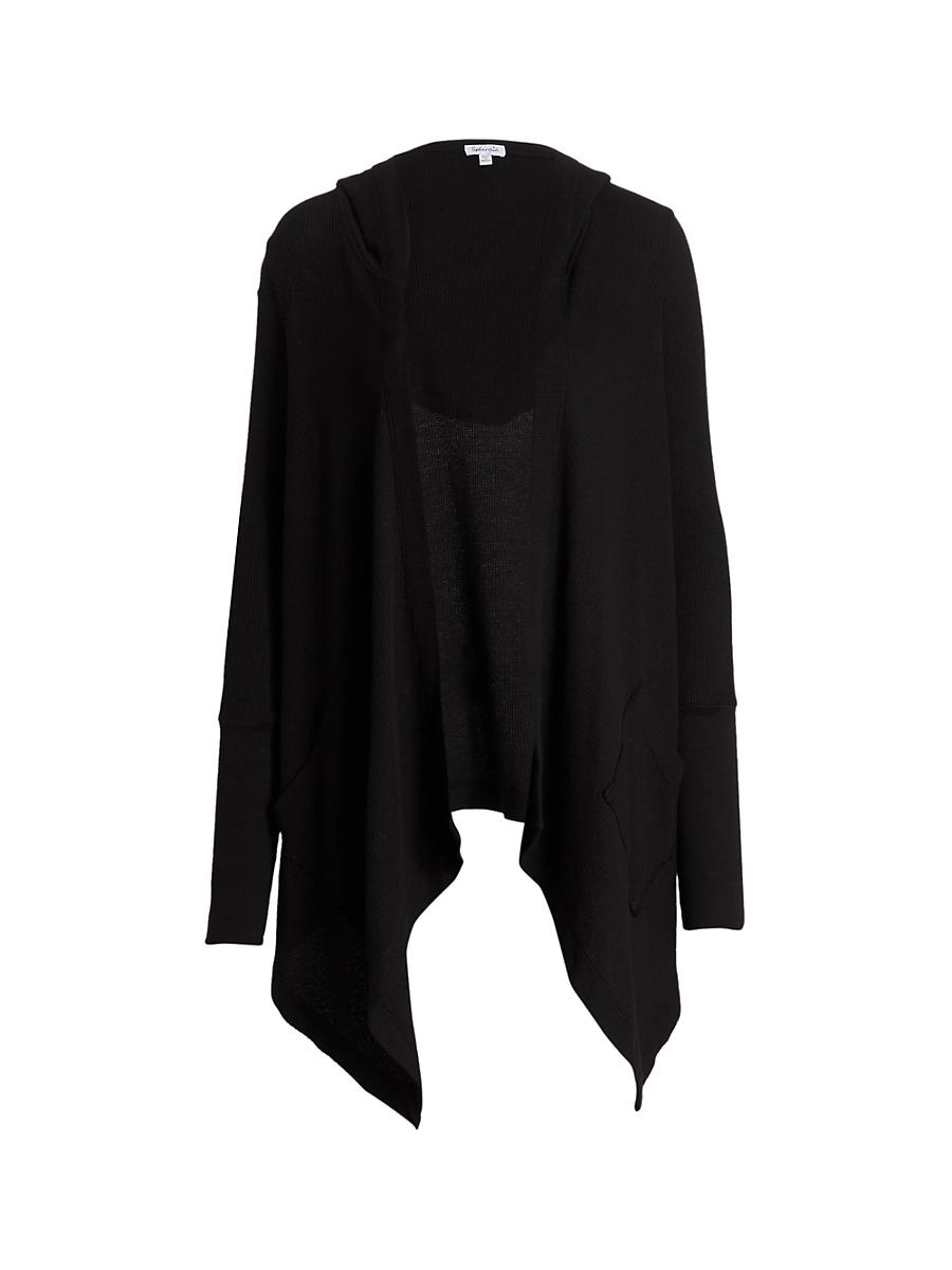 Flowing angular cardigan with a draped silhouette. Attached hood Long sleeves Banded cuffs Draped open front Front patch pockets Ribbed trim Pointed hem Supima cotton/micro modal/spandex Machine wash Made in USA SIZE & FIT About 33 from shoulder to hem Model shown is 510 (177cm) wearing US size Small. Contemporary Sportswear - Casual Separates > Splendid > Saks Fifth Avenue > Barneys. Splendid. Color: Black. Size: Large.