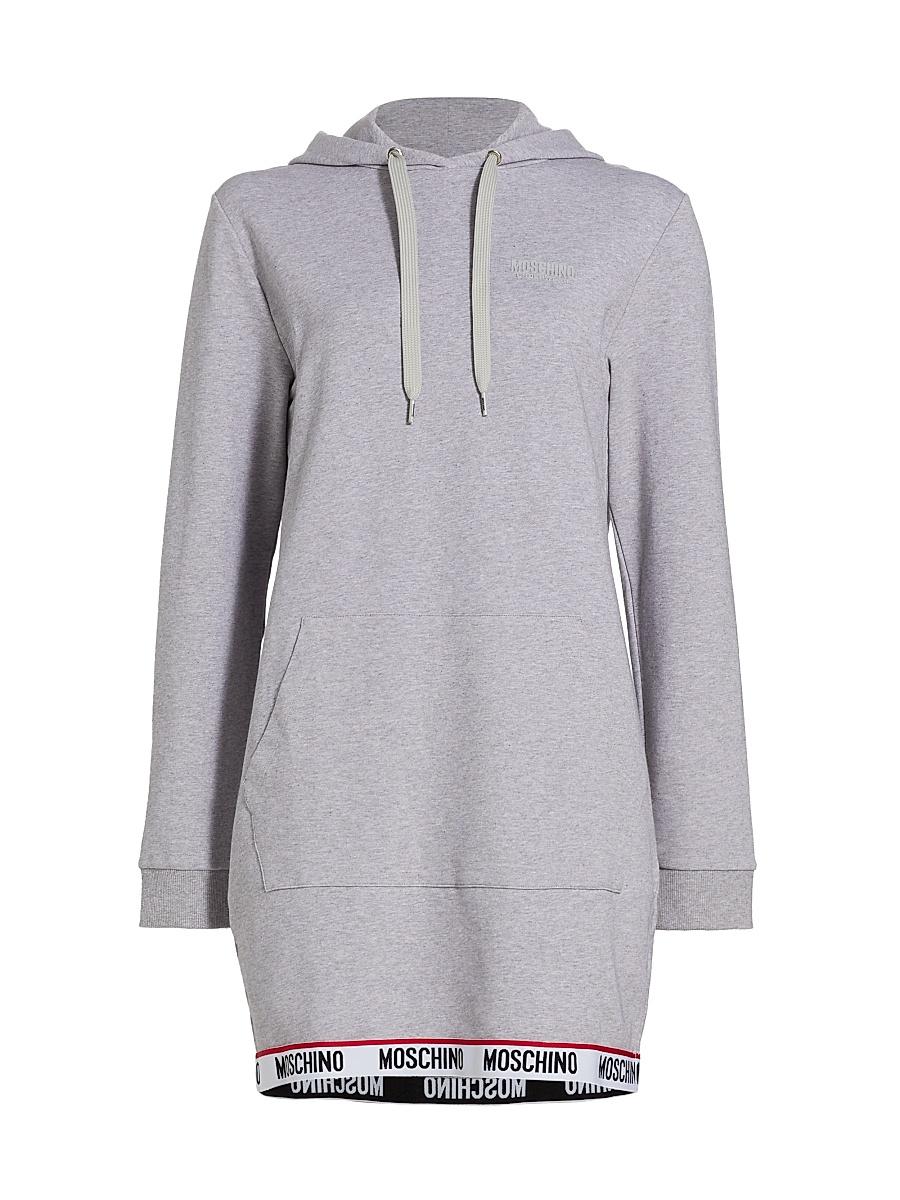 Cut in an oversized silhouette, Moschinos hooded long-sleeve minidress offers sweatshirt-inspired styling and contrast logo tape at the hem. Attached hood, adjustable drawstrings Dropped shoulders Long sleeves, banded ribbed cuffs Kangaroo pocket Logo tape hem Pulls over 95% cotton/5% elastane Machine wash Imported SIZE & FIT This style is designed for an oversized fit About 34 from shoulder to hem Bust, about 37 Model measurements: 510 tall Model is wearing a US size Small Please Note: Compared to the Saks Size Guide, this style measures true to size. Lingerie - Designer Foundations > Moschino > Saks Fifth Avenue > Barneys. Moschino. Color: Grey. Size: XS.