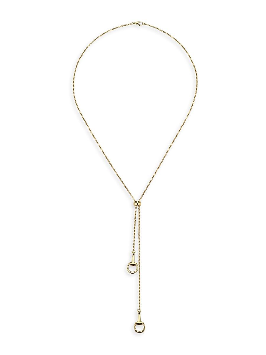 From the Horsebit Collection. Showcasing the labels signature horsebit motif, Guccis necklace is crafted of 18K yellow gold. 18K yellow gold Lobster clasp Made in Italy SIZE About 21.6 maximum length ABOUT THE BRAND First launched in 1921, the Italian luxury fashion house quickly became known for its fine leather craftsmanship and accessories. Today, the visionary brand continues to redefine fashion trends, while celebrating creativity and innovation. Guccis contemporary designs include shoe