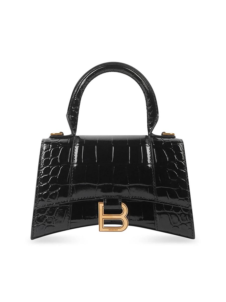 Hourglass XS handbag in shiny crocodile embossed calfskin, aged-gold hardware. Shiny crocodile embossed calfskin Handbag Curvilinear base One handle. Studded magnet closure Aged-gold B logo hardware 1 back pocket Nappa lambskin lining Wipe with a soft cloth Made in Italy SIZE 7.4W x 5.1H x 3.1D Adjustable and removable crossbody strap, 21.6 inch. Lsd Handbags - Balenciaga > Balenciaga > Saks Fifth Avenue > Barneys. Balenciaga. Color: White.