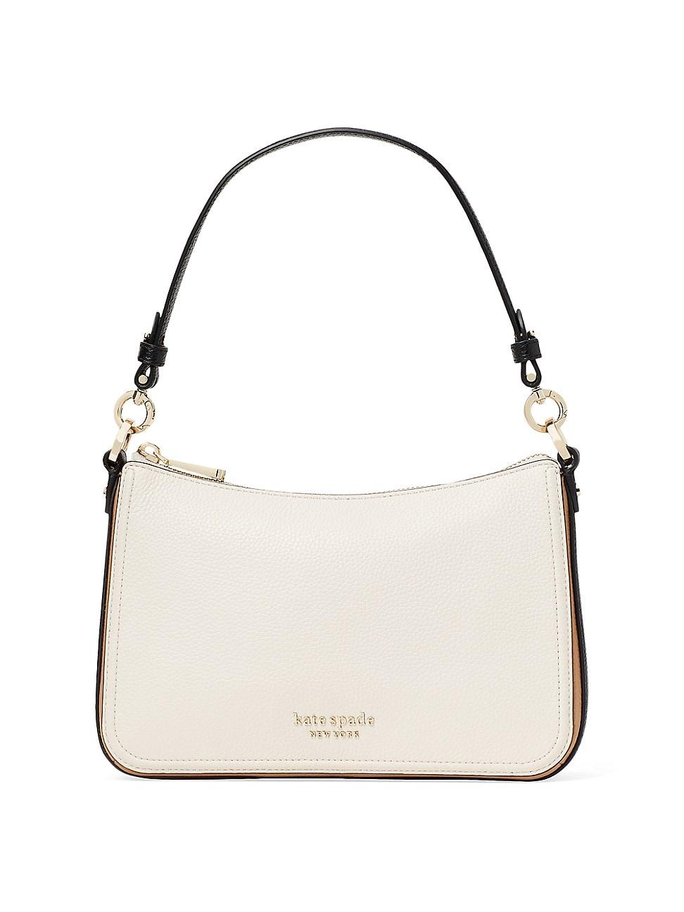 kate spades Hudson shoulder bag is crafted of colorblocked pebble leather with a removable crossbody strap. Top handle Removable, adjustable crossbody strap Top zip closure Back flat pocket Interior flat pocket Pebbled leather Lining: Textile Imported SIZE 9.5W x 6.5H x 2.5D. Handbags - Contemporary Handbags > Kate Spade New York > Saks Fifth Avenue > Barneys. kate spade new york. Color: Parchment Multi.