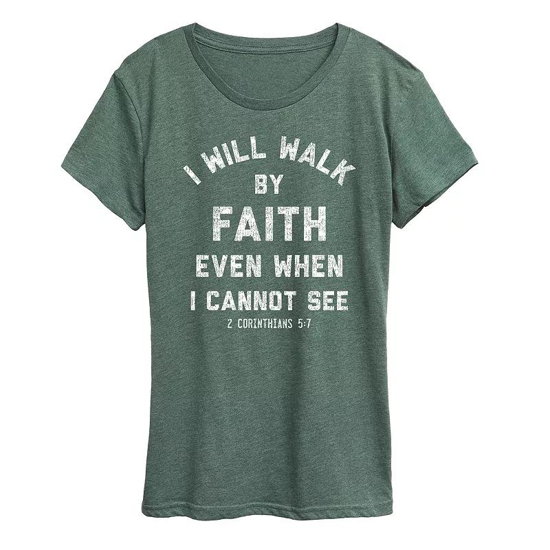 She will love showing off her style with this Womens I Will Walk By Faith Graphic Tee. FEATURES Short sleeves CrewneckFABRIC & CARE Solid Color: Cotton ; Heather Colors: Cotton/Polyester Machine wash Imported Size: Small. Color: Green. Gender: female. Age Group: adult.