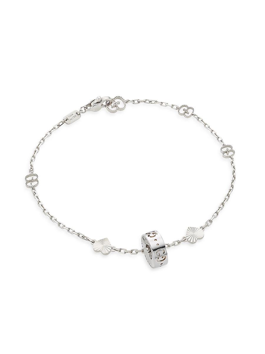 From the Icon Collection. Guccis stunning bracelet is crafted of 18K white gold, featuring the labels signature GG logo and textured heart charms. 18k white gold Lobster clasp Made in Italy SIZE Length, about 6.3. Fine Jewelry - Gucci Jewelry > Gucci > Saks Fifth Avenue > Barneys. Gucci. Color: White Gold.