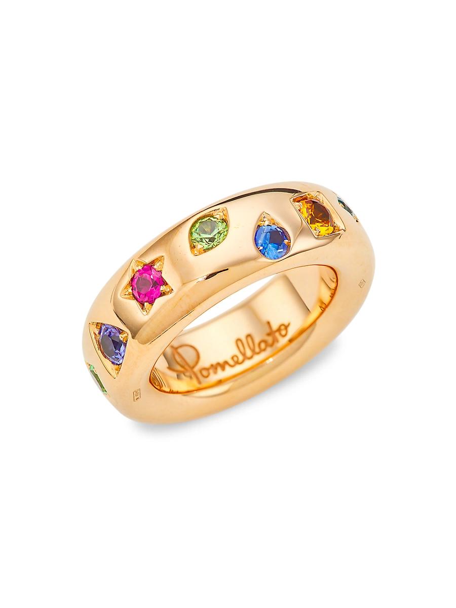 From the Iconica Collection. This stunning ring by Pomellato is made of 18K rose gold. Decorated with a rainbow of multi gemstones of various settings, this band features the labels namesake engraved on the interior. Orange sapphire Pink tourmaline Peridot Ruby Demantoid Red spinel Tanzanite Tsavorite Zircon 18K rose gold Made in Italy. Fine Jewelry - Pomellato > Pomellato > Saks Fifth Avenue > Barneys. Pomellato. Size: 7.