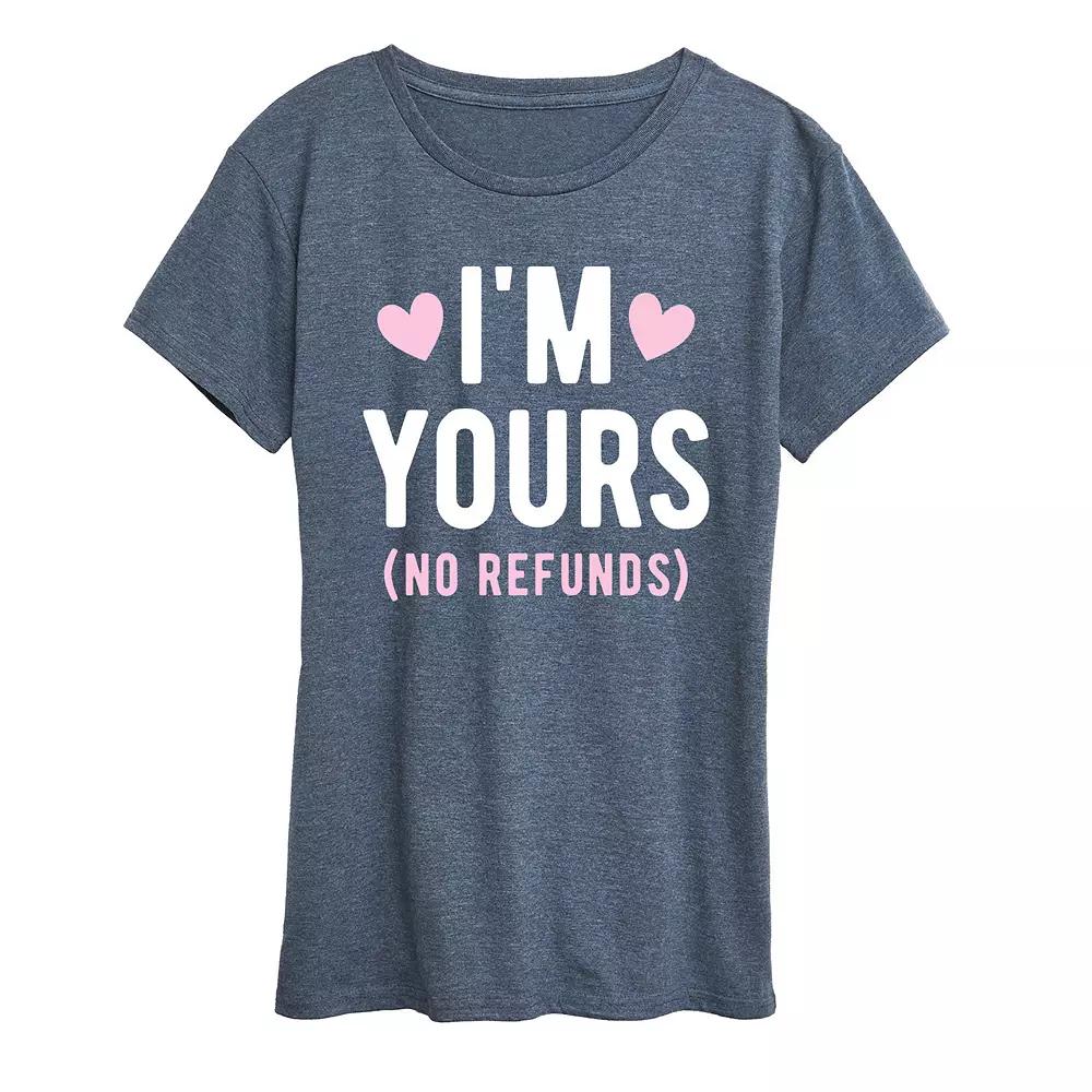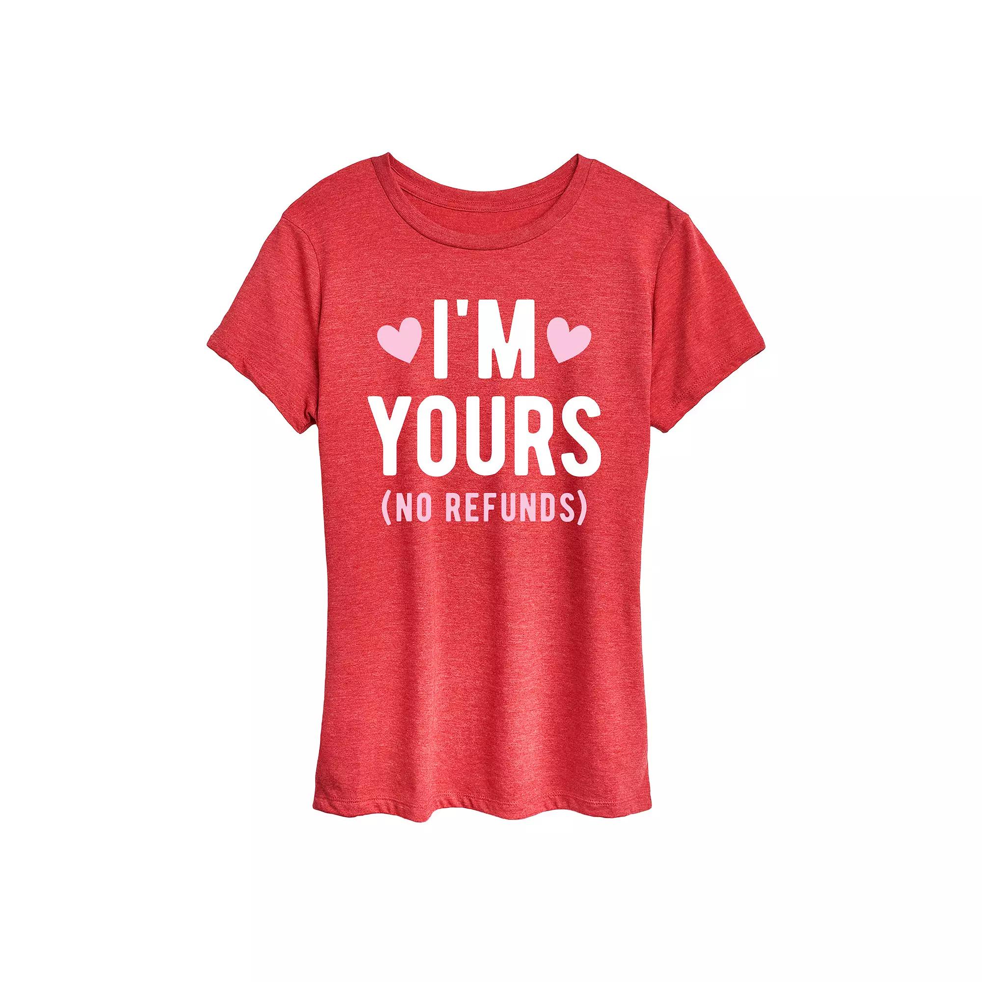 She will love showing off her style with this Womens Im Yours No Refunds Graphic Tee. FEATURES Short sleeves CrewneckFABRIC & CARE Solid Color: Cotton ; Heather Colors: Cotton/Polyester Machine wash Imported Size: Large. Color: Red. Gender: female. Age Group: adult.